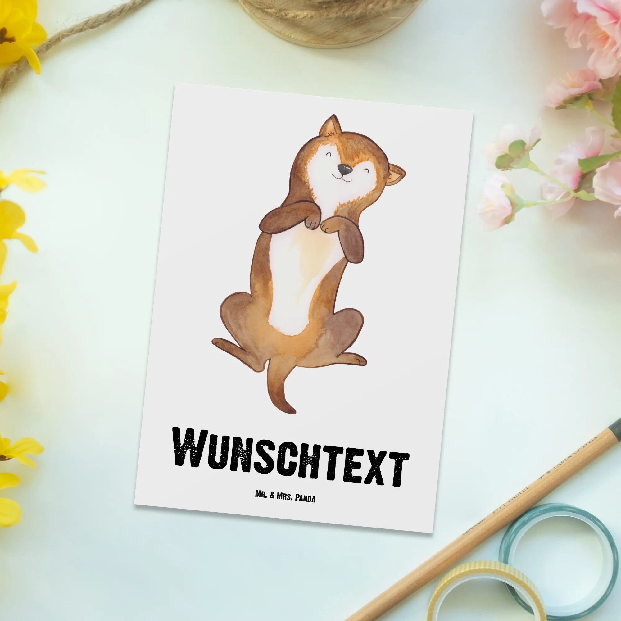 Die personalisierte Postkarte "Hund Bauchkraulen" aus der einzigartigen Hunde Kollektion von Mr. & Mrs. Panda ist das perfekte Geschenk für alle Hundeliebhaber! Egal ob für Geburtstage, Hochzeiten oder einfach als liebevolle Geste zwischendurch - diese Postkarte bringt Freude in jeden Hundebesitzerhaushalt. Sie zeigt einen fröhlichen Hund, der sich genüsslich auf dem Rücken räkelt und darauf wartet, dass sein Bauch gekrault wird. Das Motiv erinnert uns daran, wie wichtig unsere vierbeinigen Freunde in unserem Leben sind und wie viel Glück sie uns bringen.
