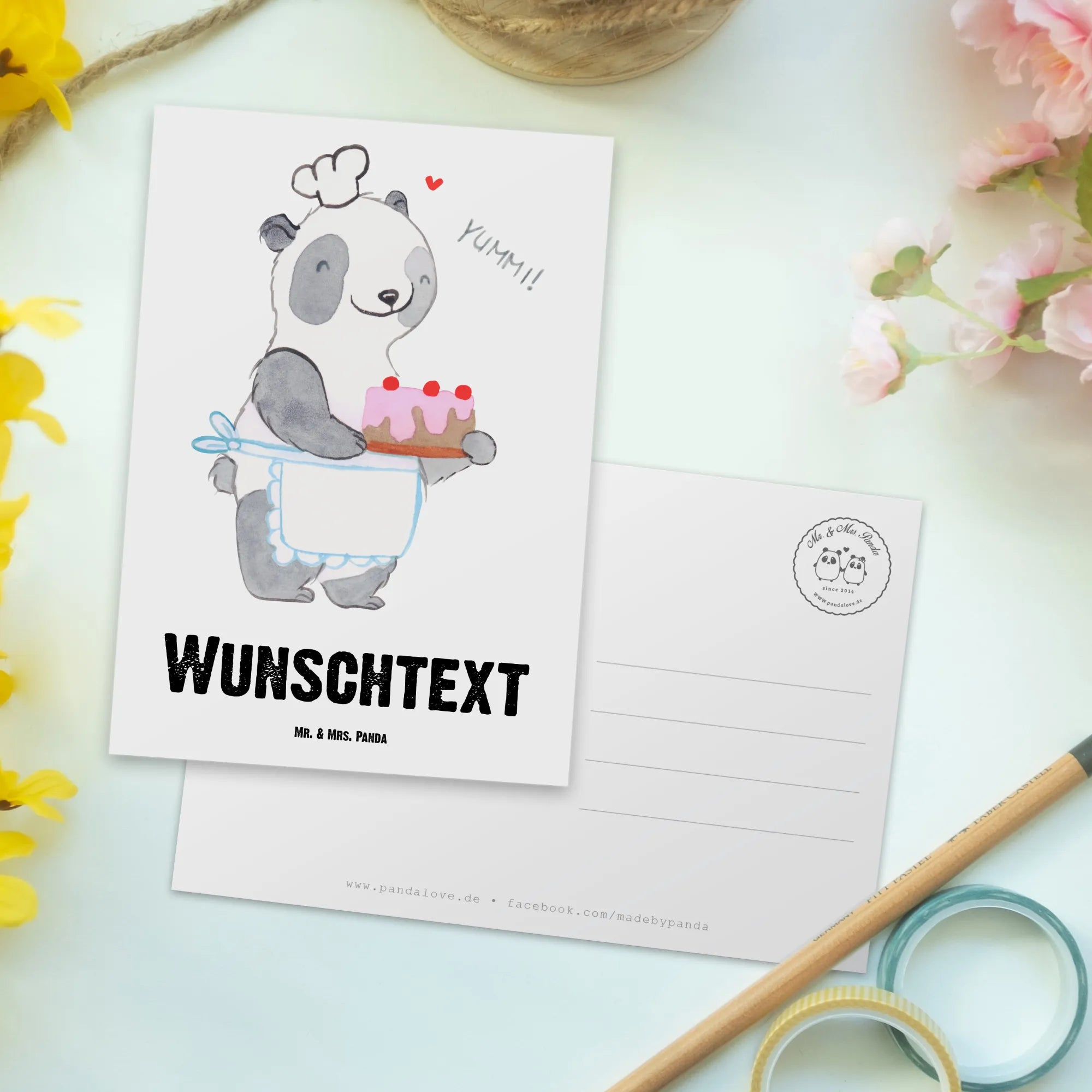 Personalisierte Postkarte Panda Backen Einladung mit Wunschtext, Postkarte mit Namen, Grußkarte mit Namen, Postkarte mit Wunschtext, Geschenkkarte mit Namen, Ansichtskarte mit Wunschtext, Ansichtskarte mit Namen, Karte mit Namen, Karte mit Wunschtext, Einladung mit Namen, Grußkarte mit Wunschtext, Geschenkkarte mit Wunschtext, Postkarte personalisierbar, Postkarte bedrucken, Geschenk, Sport, Sportart, Hobby, Schenken, Danke, Dankeschön, Auszeichnung, Gewinn, Sportler, Hobbybäcker, Kuchen backen, backen