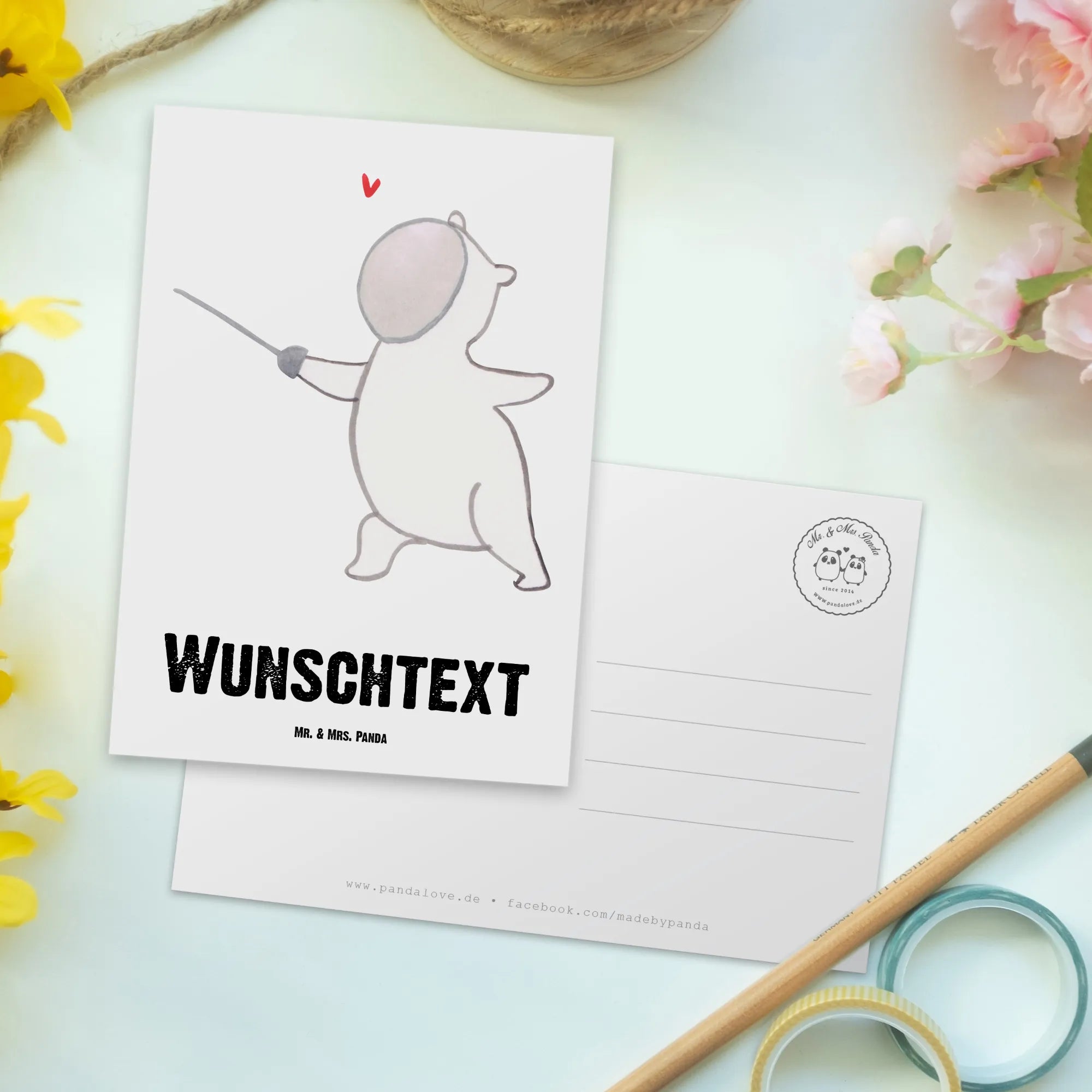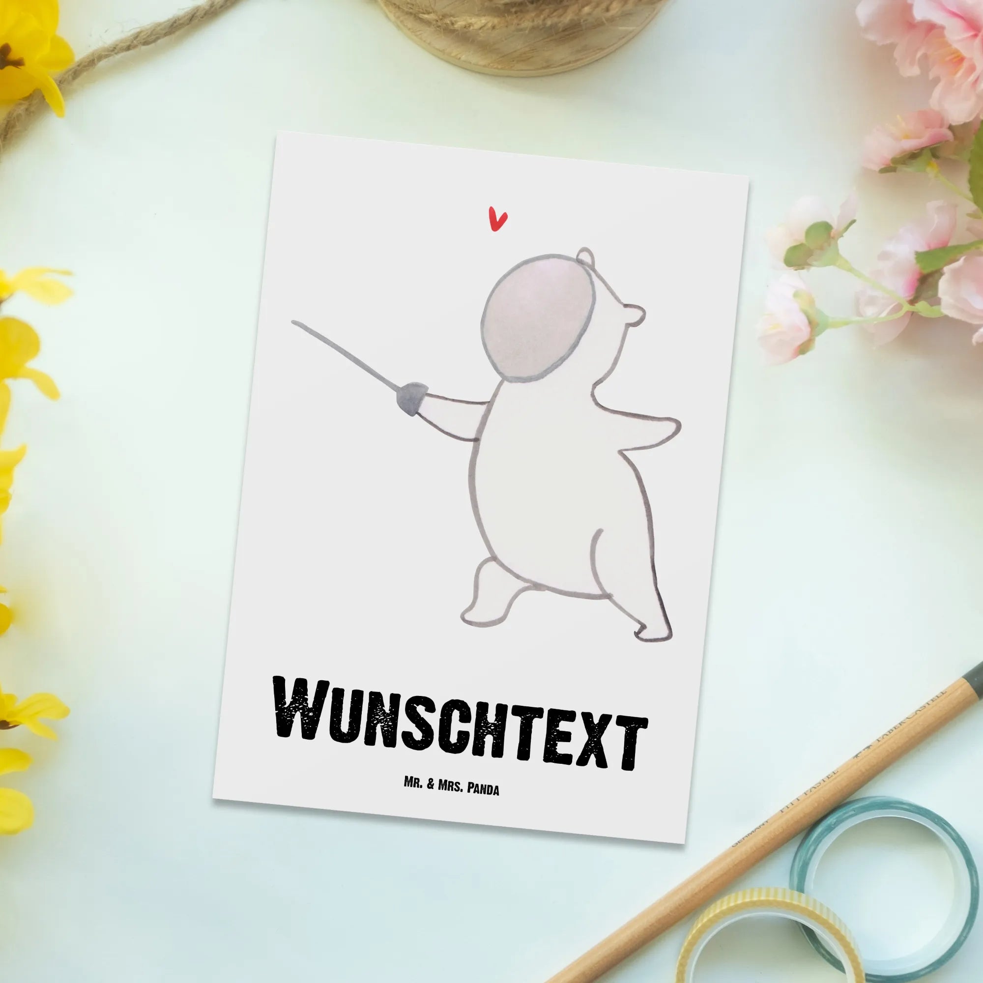Verpasse nicht die Gelegenheit, diesen besonderen Gruß an seinen Platz in deinem Leben oder im Leben eines Freundes einzuladen. Mit der personalisierten Postkarte "Panda Fechten Tage" machst du jedem Fechter eine Freude und zeigst, wie viel dir diese Person bedeutet. Egal ob es als Dankeschön, für sportliche Erfolge oder einfach nur so ist, diese Karte ist ein Must-Have für jeden Fecht-Liebhaber.