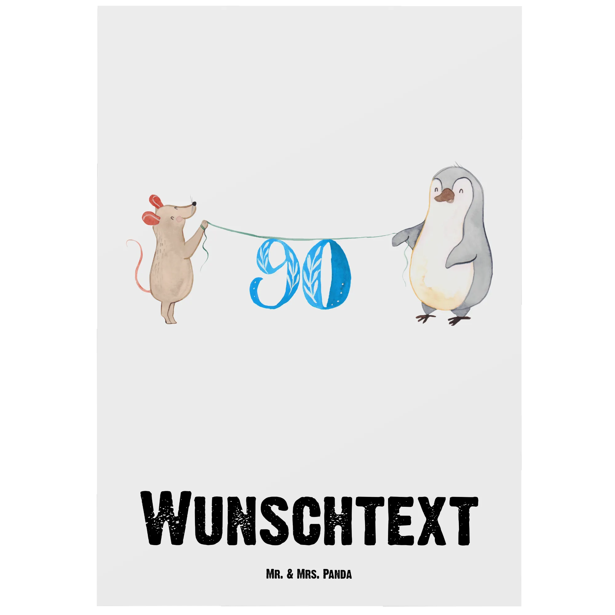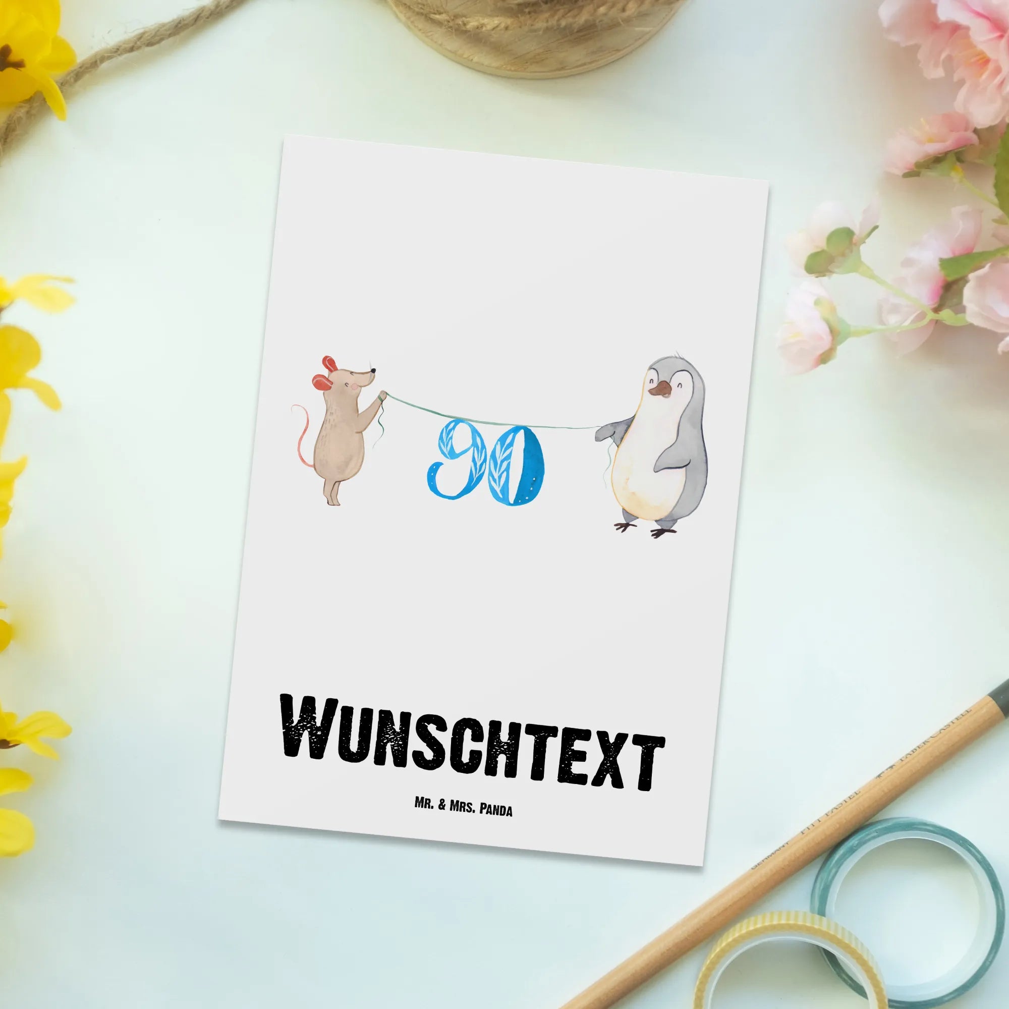 Personalisierte Postkarte 90. Geburtstag Maus Pinguin