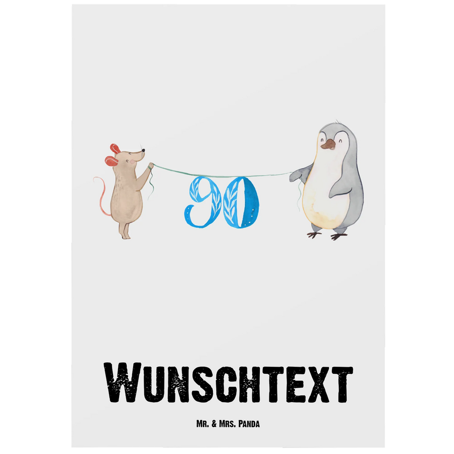 Entdecke die perfekte personalisierte Postkarte zum 90. Geburtstag mit dem niedlichen Motiv von der Maus und dem Pinguin! Diese einzigartige Postkarte von Mr. & Mrs. Panda ist nicht nur liebevoll gestaltet, sondern auch personalisierbar mit deinem Wunschnamen oder Wunschtext. Sie stammt aus unserer liebevollen Geburtstagskollektion, die für diesen ganz besonderen Tag im Jahr entworfen wurde.