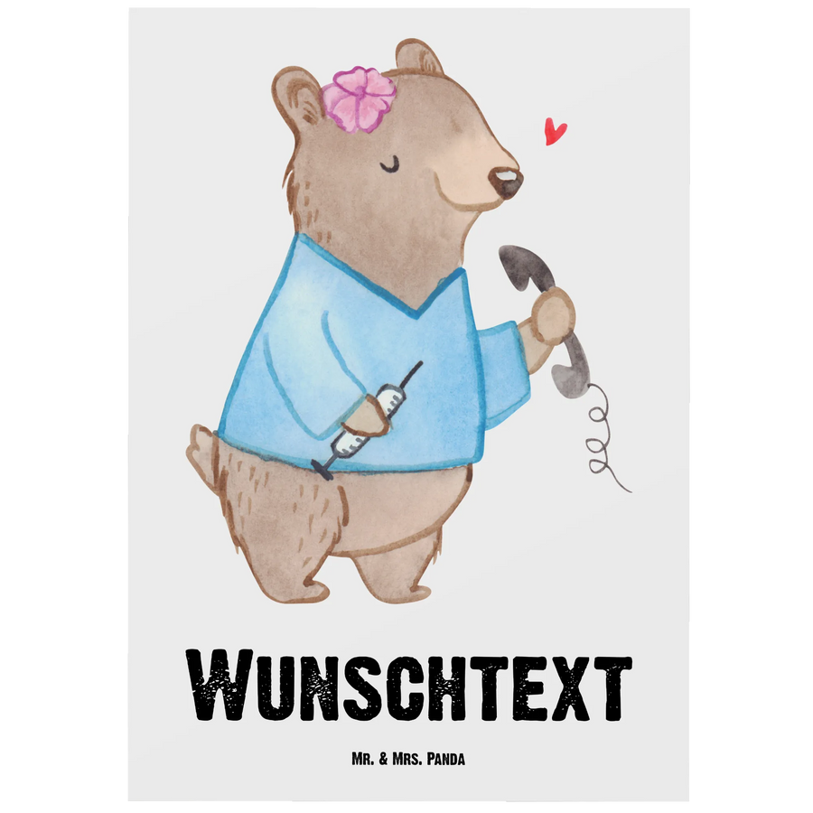 Suchst du nach dem perfekten Geschenk für eine liebe Arzthelferin? Unsere personalisierbare Postkarte mit dem liebevollen Motiv "Arzthelferin mit Herz" von Mr. & Mrs. Panda ist genau das richtige! Diese wunderschöne Karte ist mehr als nur ein einfaches Stück Papier; sie ist eine herzliche Botschaft, die Dankbarkeit und Wertschätzung für die wichtigen Menschen in deinem Leben ausdrückt.