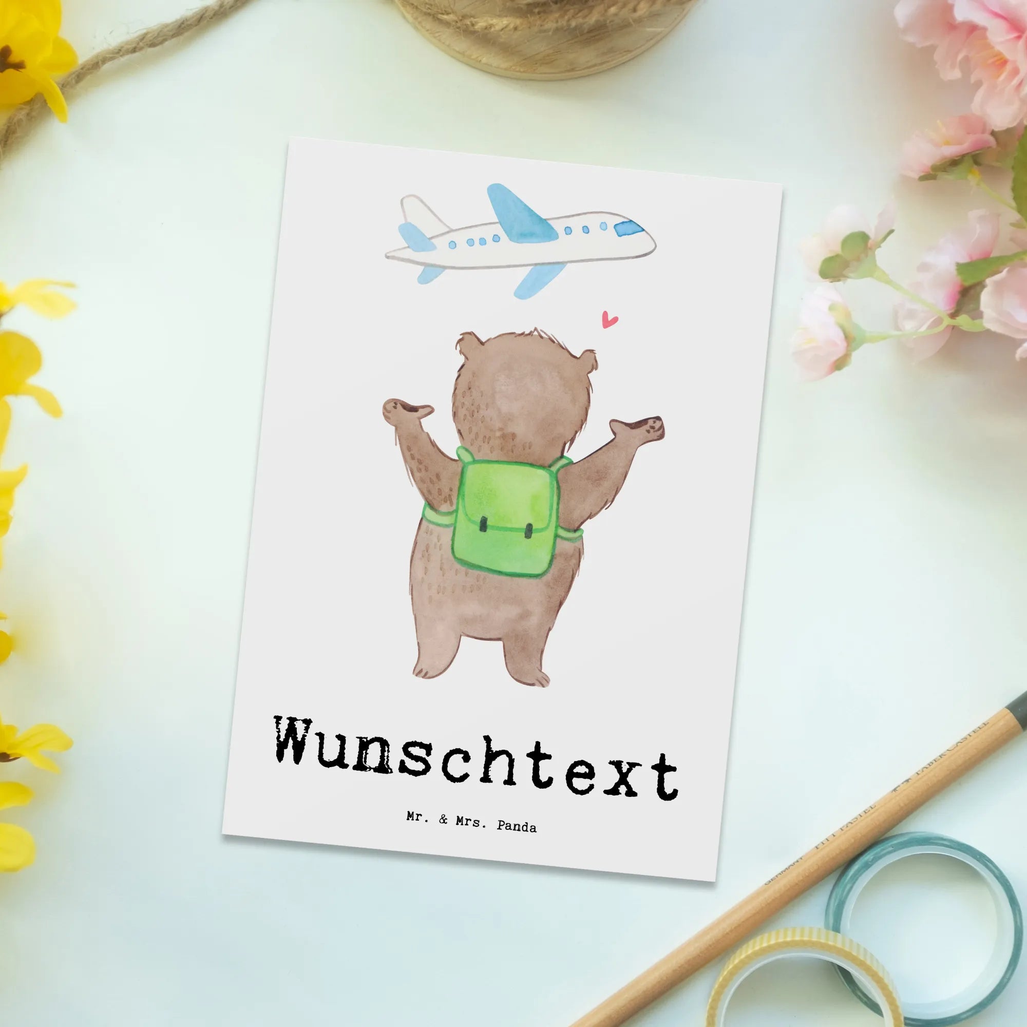 Die personalisierte Postkarte 'Bär Reisen Tage' von Mr. & Mrs. Panda ist das perfekte Geschenk für alle Reisebegeisterten, die die Welt erkunden wollen!
