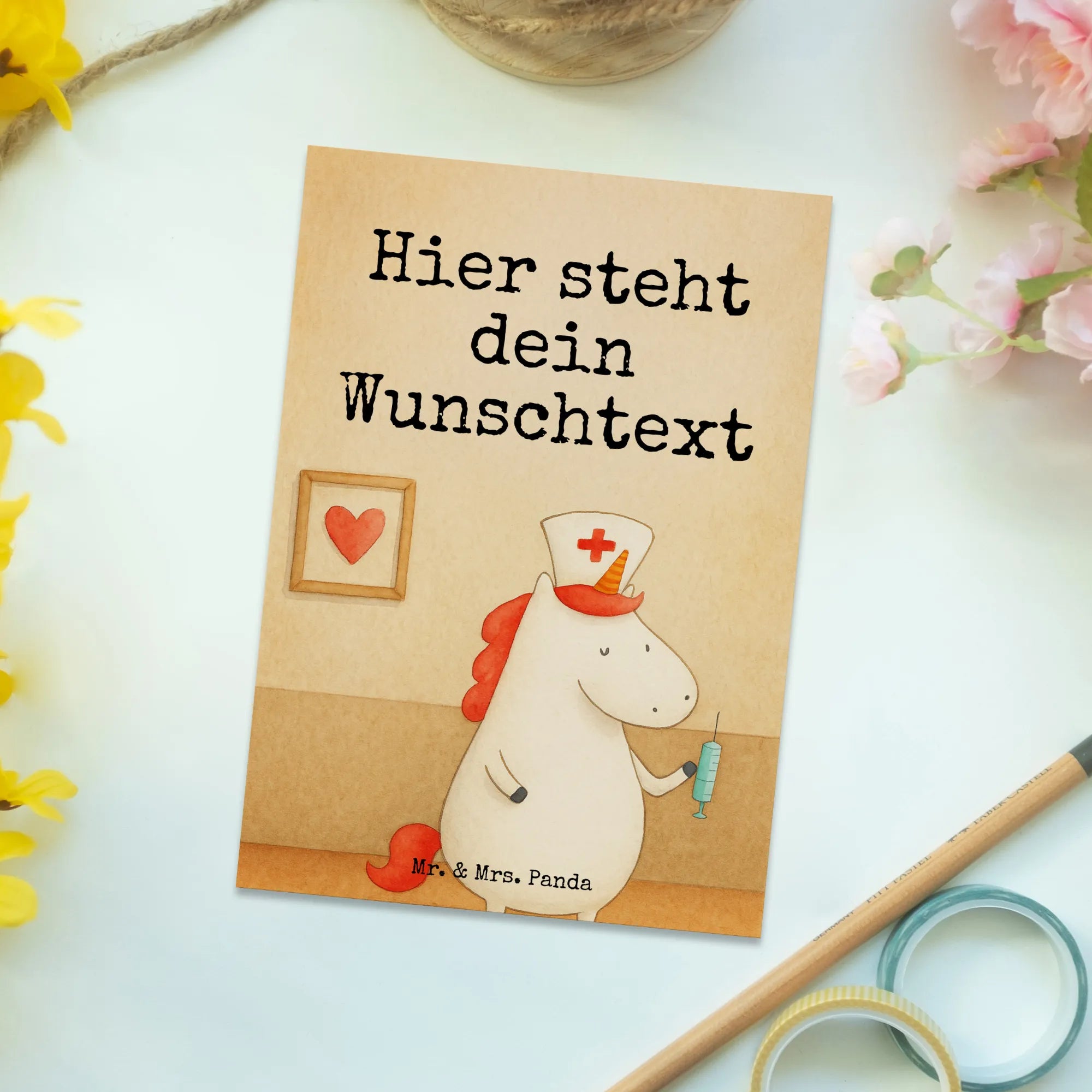 Personalisierte Grußkarte Einhorn Krankenschwester Design