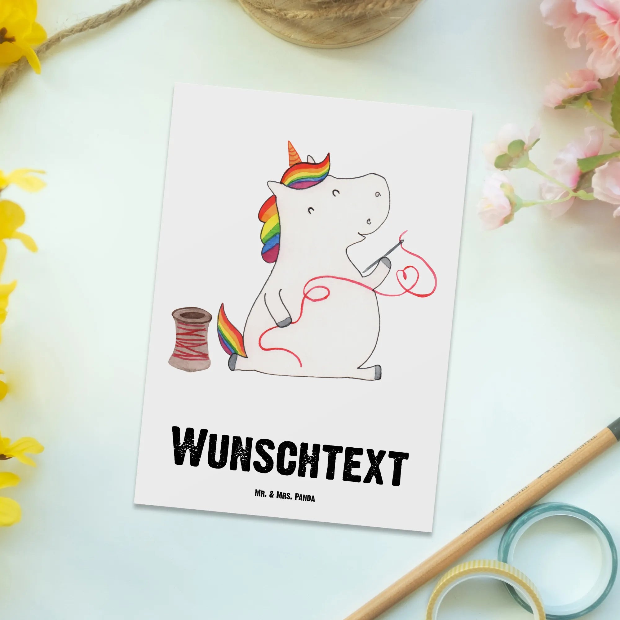 Entdecke die magische Welt von Mr. & Mrs. Panda mit unserer einzigartigen personalisierten Postkarte "Einhorn Näherin"! Diese wunderschöne Karte ist nicht nur ein farbenfrohes Design, sondern ein echtes Herzensgeschenk für kreative Köpfe und Einhorn-Liebhaber. Sie ist perfekt geeignet für alle, die gerne nähen, stricken oder basteln und ihre Leidenschaft mit anderen teilen möchten. Die Postkarte zeigt ein niedliches Einhorn, das mit Nadel und Faden zauberhafte Dinge näht – eine echte Inspirationsquelle für alle Näherinnen!