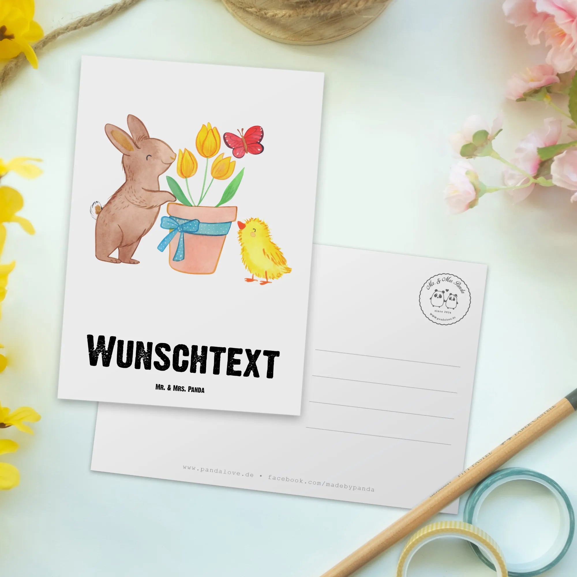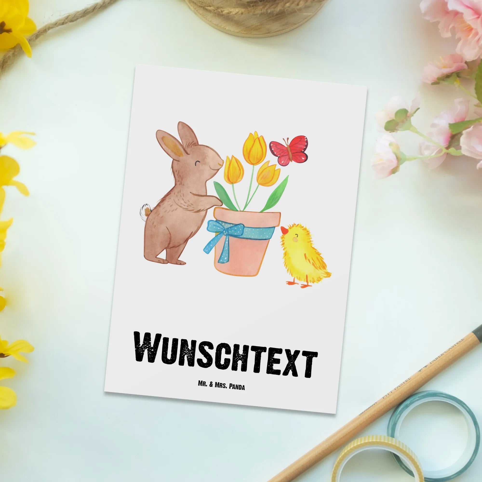 Personalisierte Postkarte Hase Küken – ein fröhliches Ostergeschenk von Mr. & Mrs. Panda