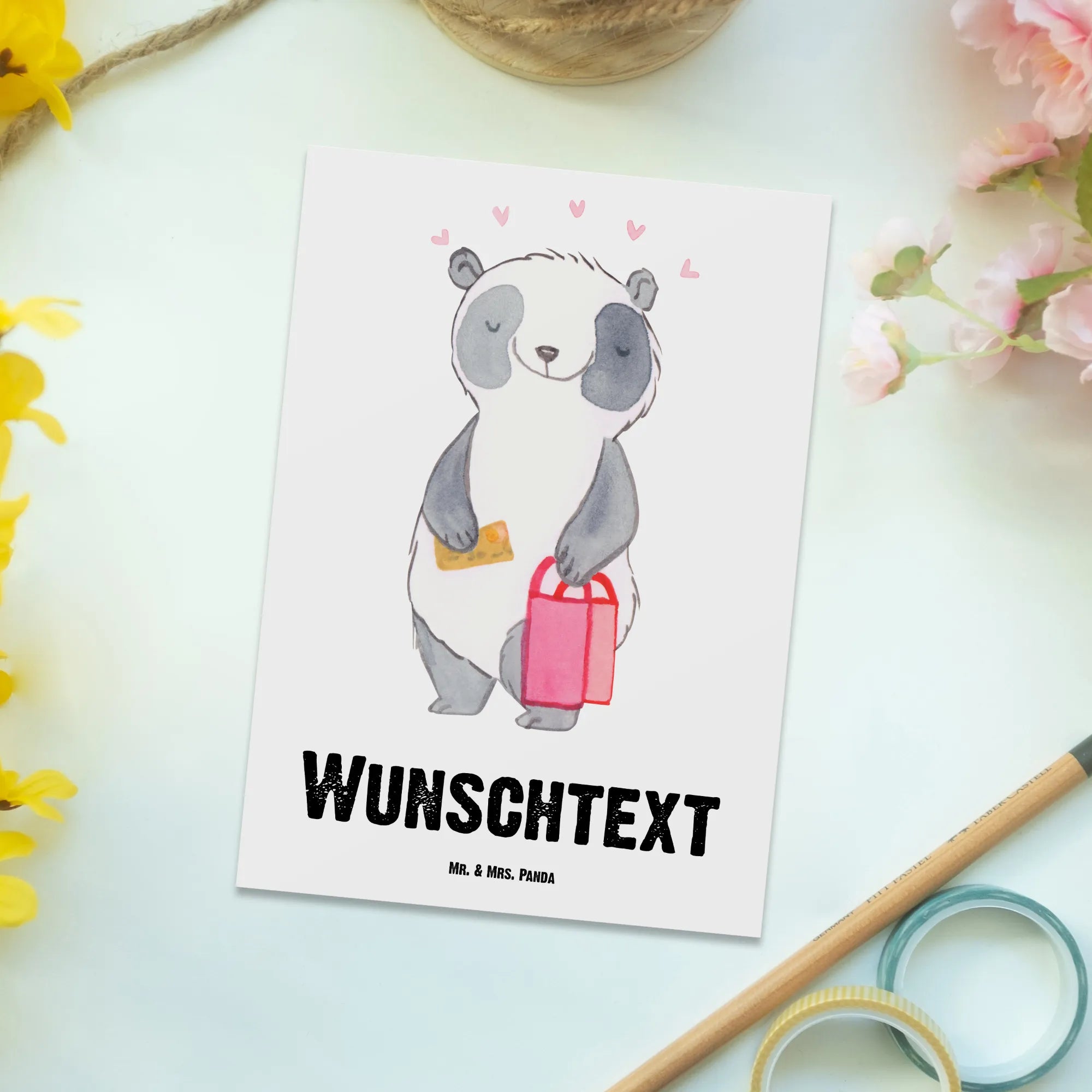 Personalisierte Postkarte Panda Beste Shoppingbegleitung der Welt – Mr. & Mrs. Panda