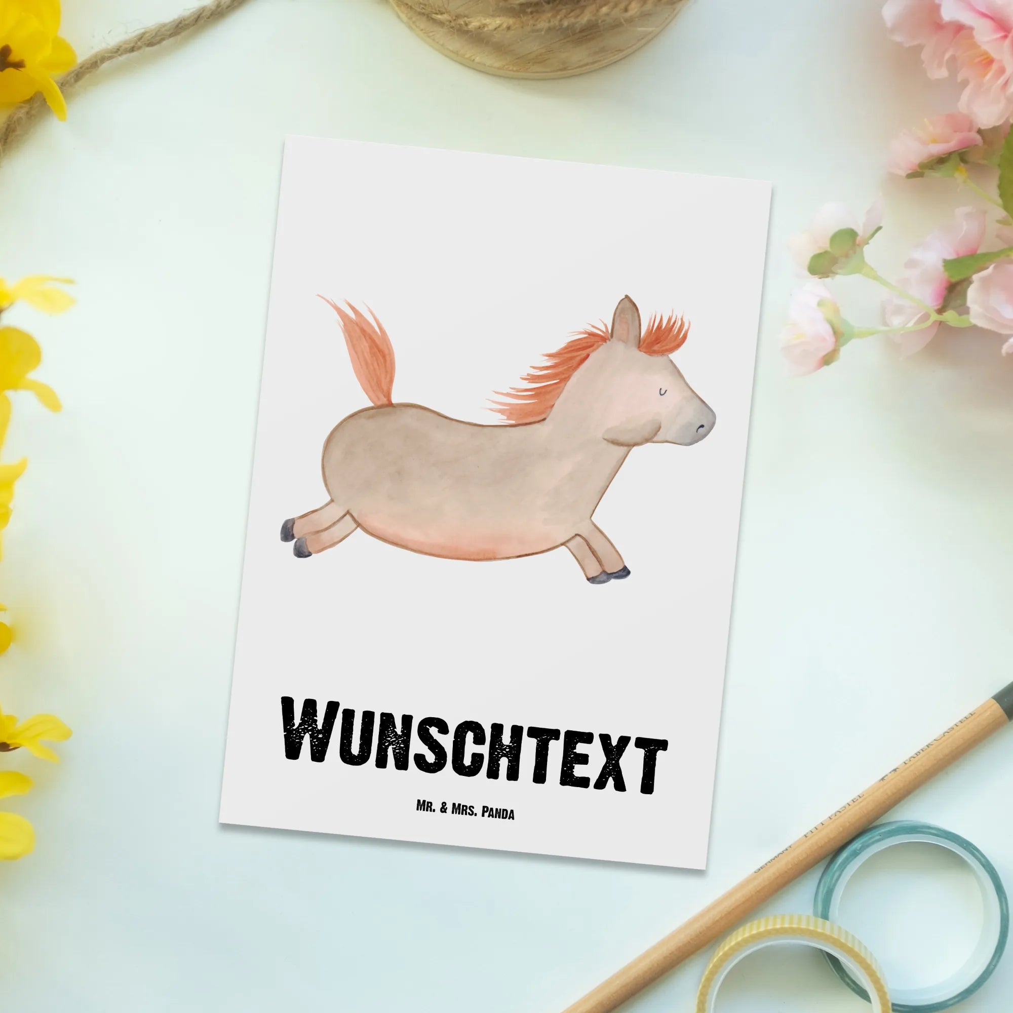 Personalisierte Postkarte „Pferd springt" aus der Bauernhof Kollektion von Mr. & Mrs. Panda