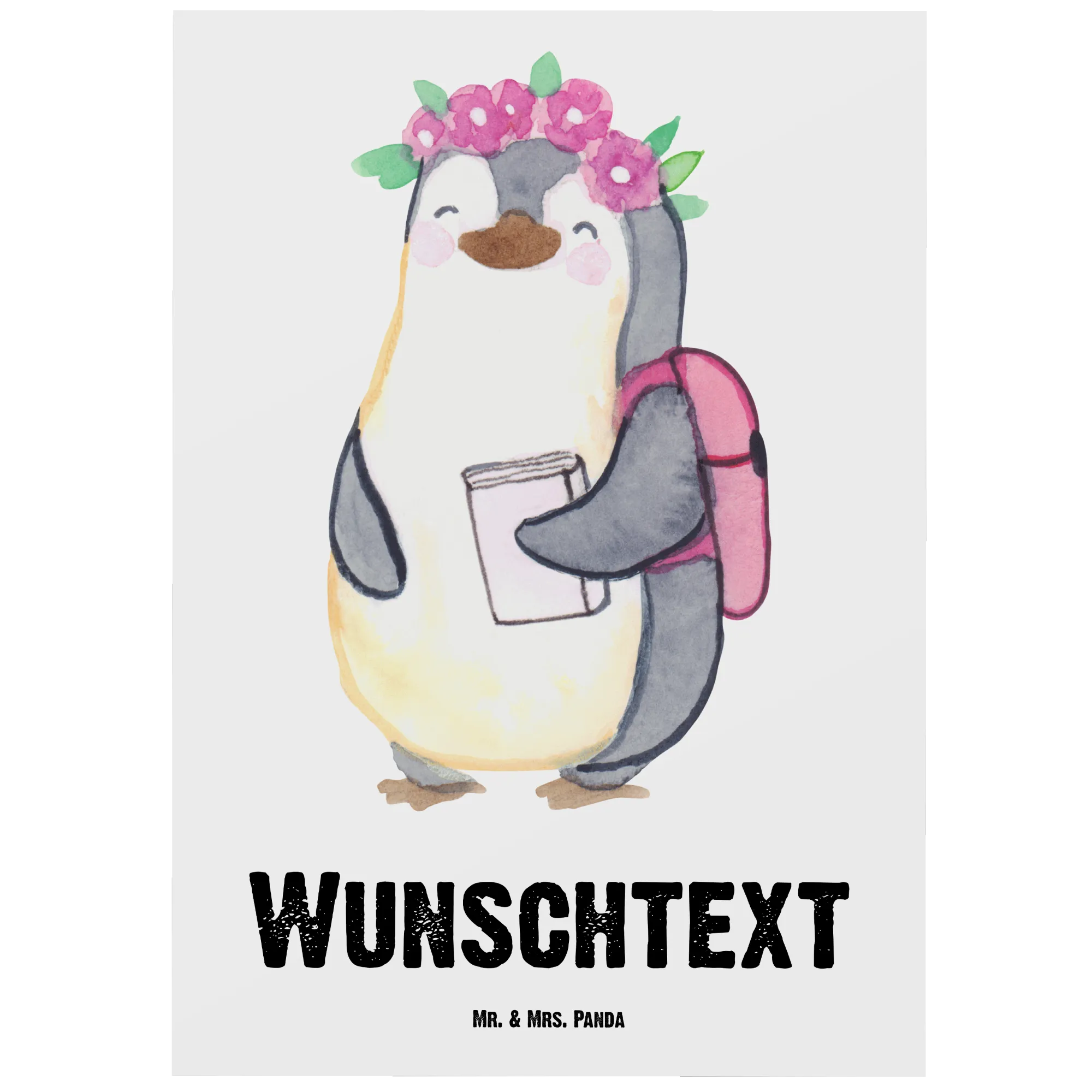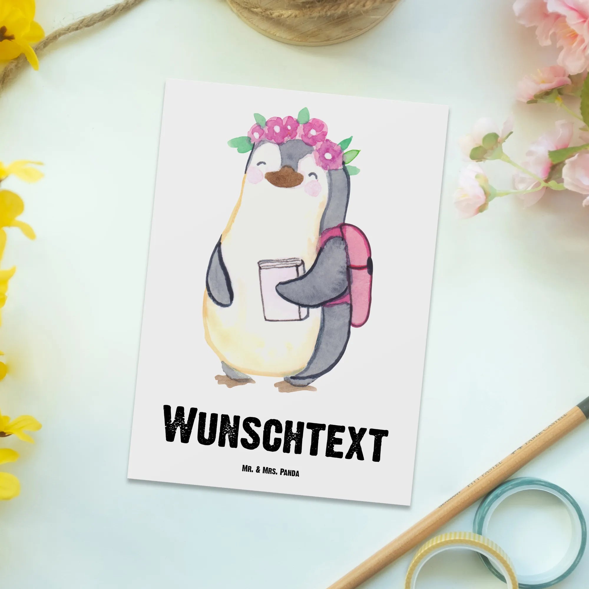 Du suchst nach einem ganz besonderen Geschenk für deine Enkelin? Dann ist die personalisierte Postkarte "Pinguin Beste Enkelin der Welt" von Mr. & Mrs. Panda genau das Richtige! Diese einzigartige Postkarte ist liebevoll gestaltet und zeigt einen niedlichen Pinguin mit einem Blumenkranz, der einen Rucksack auf dem Rücken trägt und ein Buch in der Hand hält. Damit ist sie nicht nur ein echter Hingucker, sondern bringt auch eine persönliche Note in jede Botschaft.
