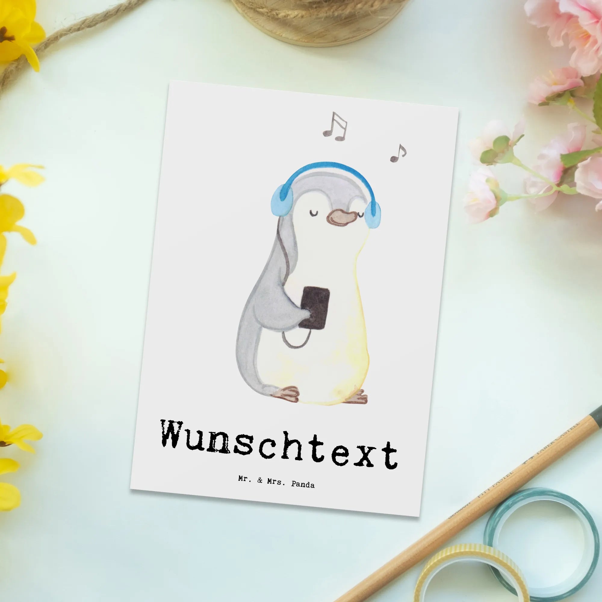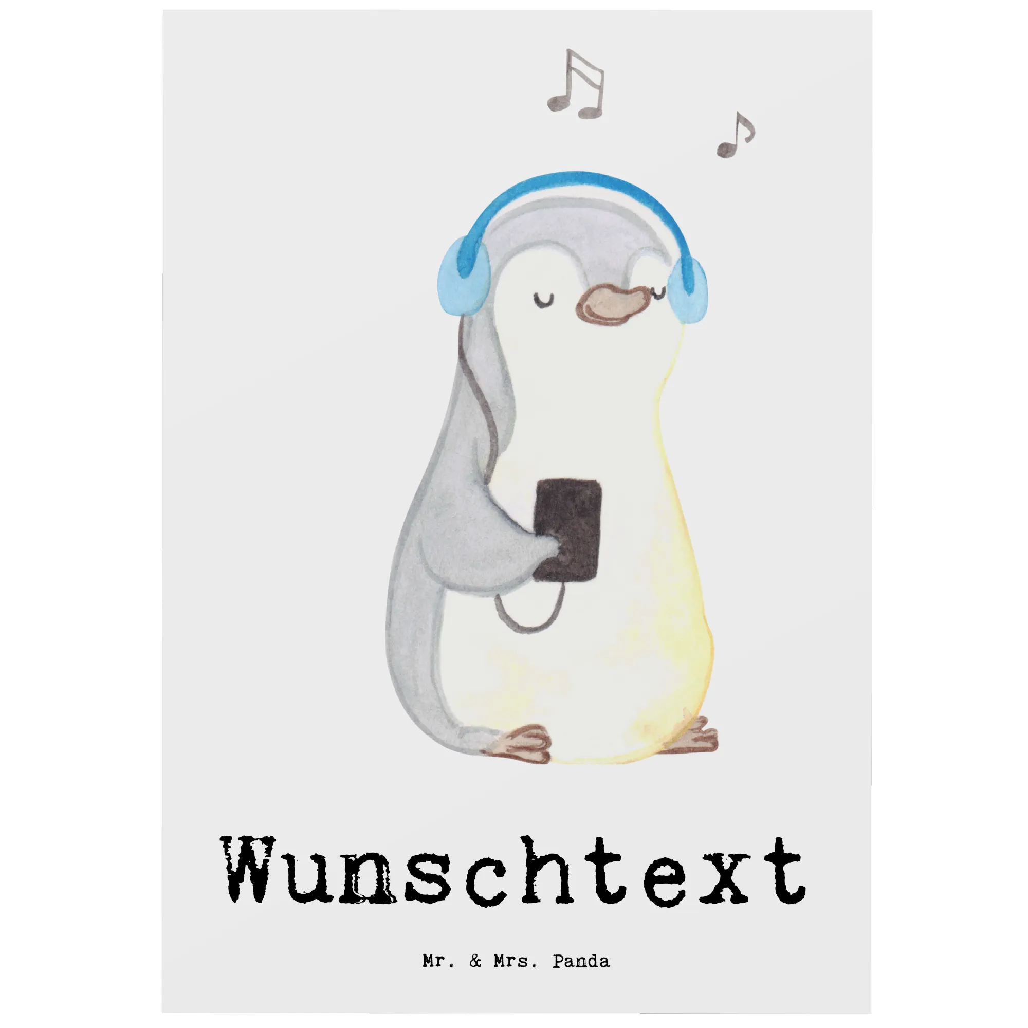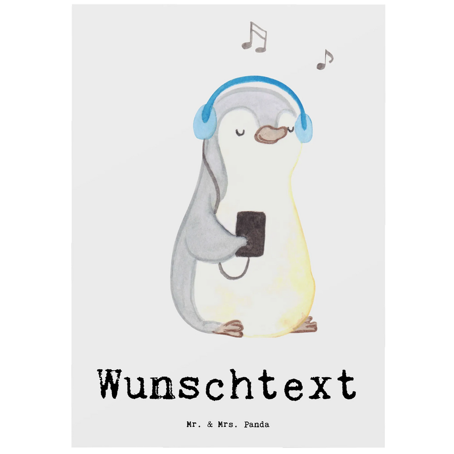 Der niedliche Pinguin mit Kopfhörern, der tolle Musik hört, bringt garantiert ein Lächeln auf sein Gesicht! Jeder liebt es, etwas Einzigartiges zu erhalten, und diese Postkarte kann mit deinem persönlichen Wunschnamen oder Wunschtext gestaltet werden.