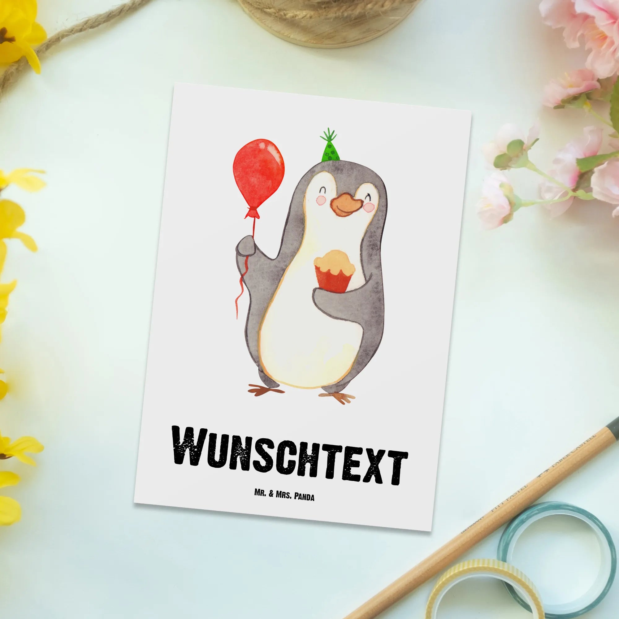 Personalisierte Postkarte „Pinguin Geburtstag“ – die zauberhafte Grußkarte von Mr. & Mrs. Panda für Geburtstage, mit persönlichem Namen und liebevollem Wunschtext. Unser kleiner Pinguin im Partyhütchen bringt sofort gute Laune und passt perfekt zu Torte, Kuchen und einer fröhlichen Feier.