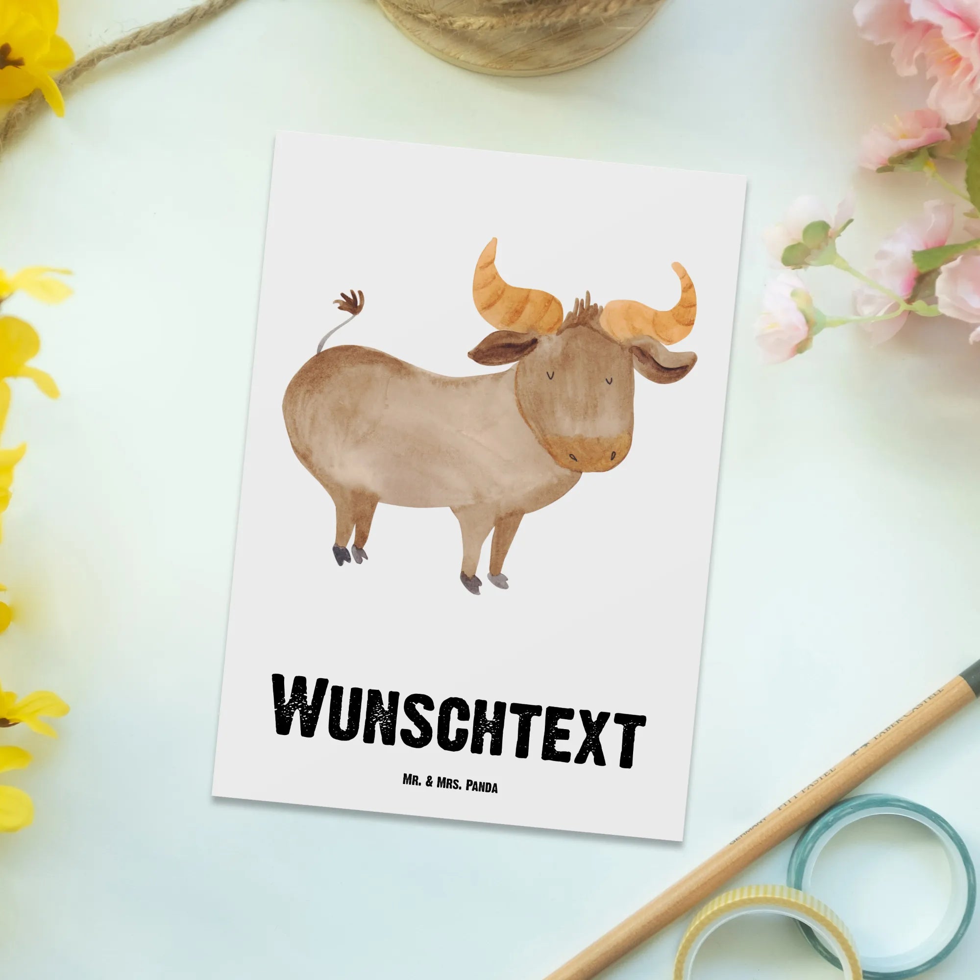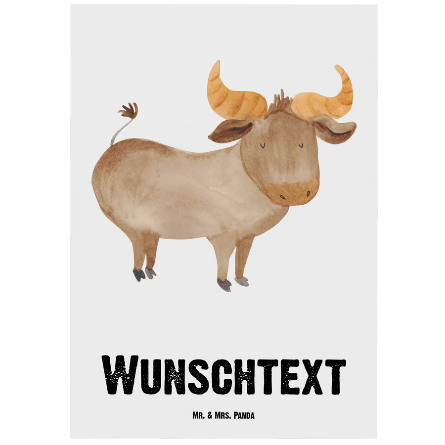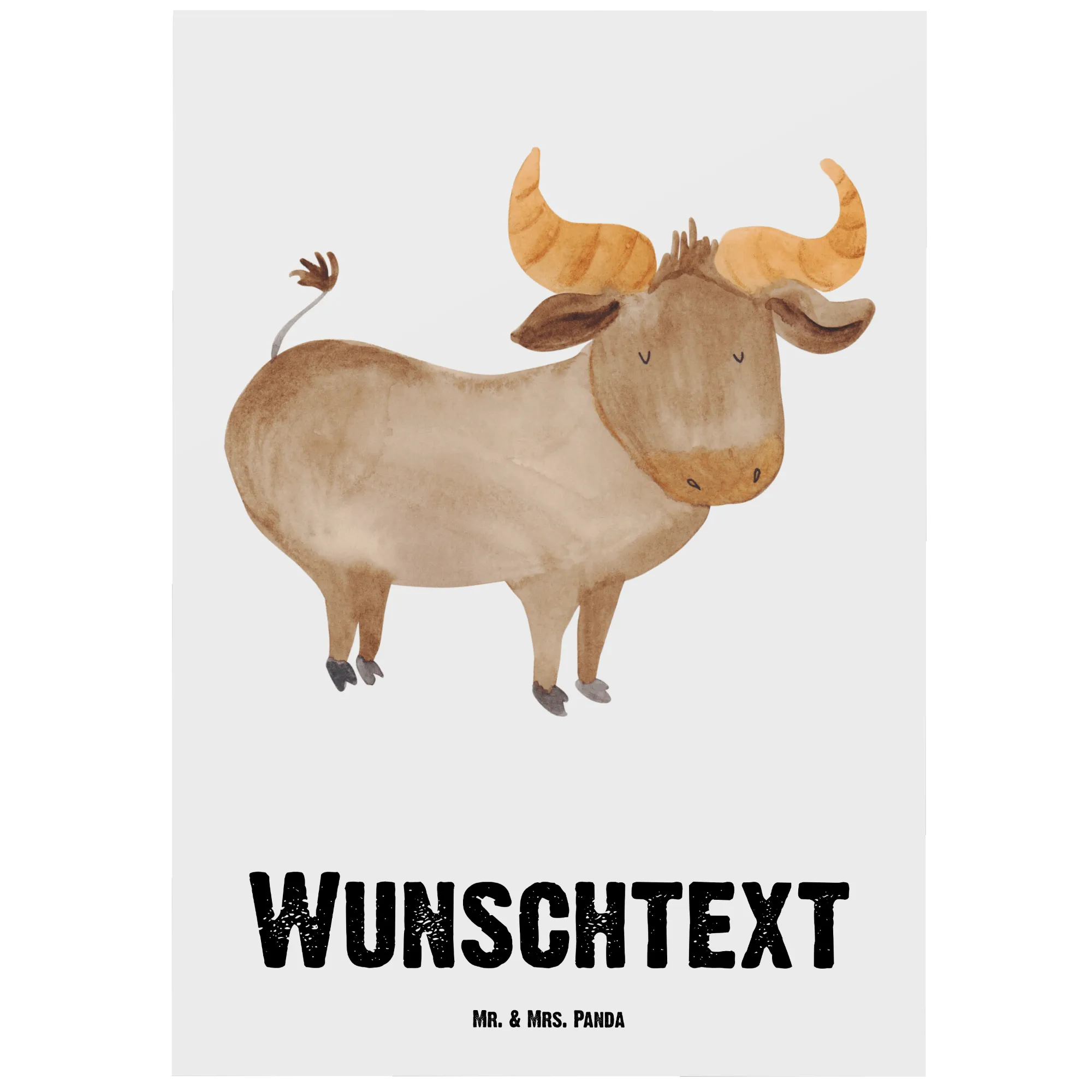 Die personalisierbare Postkarte bietet Platz für deinen Wunschnamen oder -text und hat eine blanko Rückseite, die zur kreativen Gestaltung einlädt. Sie ist aus hochwertigem 300 Gramm Karton gefertigt und verfügt über eine hochglänzend veredelte Vorderseite sowie eine matte Rückseite, die das Beschriften erleichtert. Die liebevoll handgezeichneten Motive sind ein echter Hingucker und zeigen einen niedlichen, aber dennoch kräftigen Stier, der für die Stärke und Leidenschaft dieser Sternzeichen steht.