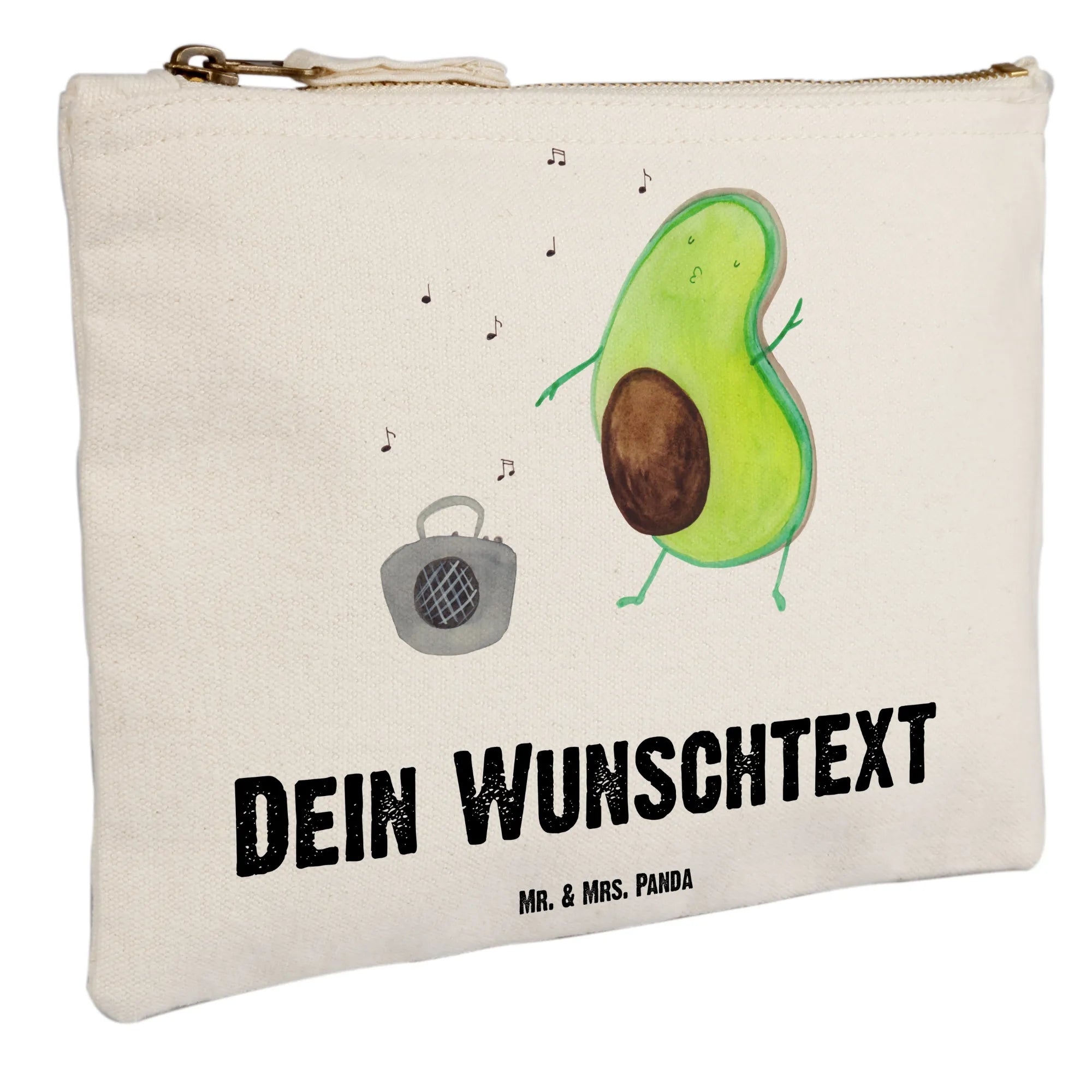 Deine Suche nach dem perfekten Geschenk für Freunde oder für Dich selbst hat ein Ende! Die personalisierte Schminktasche "Avocado tanzt" von Mr. & Mrs. Panda ist die ideale Wahl für alle, die Kosmetikartikel mit einem Hauch von Freude und Individualität bewahren möchten. Diese bezaubernde Tasche zeigt eine niedliche Avocado, die fröhlich vor einem Ghettoblaster tanzt – der perfekte Begleiter für jeden Tag!
