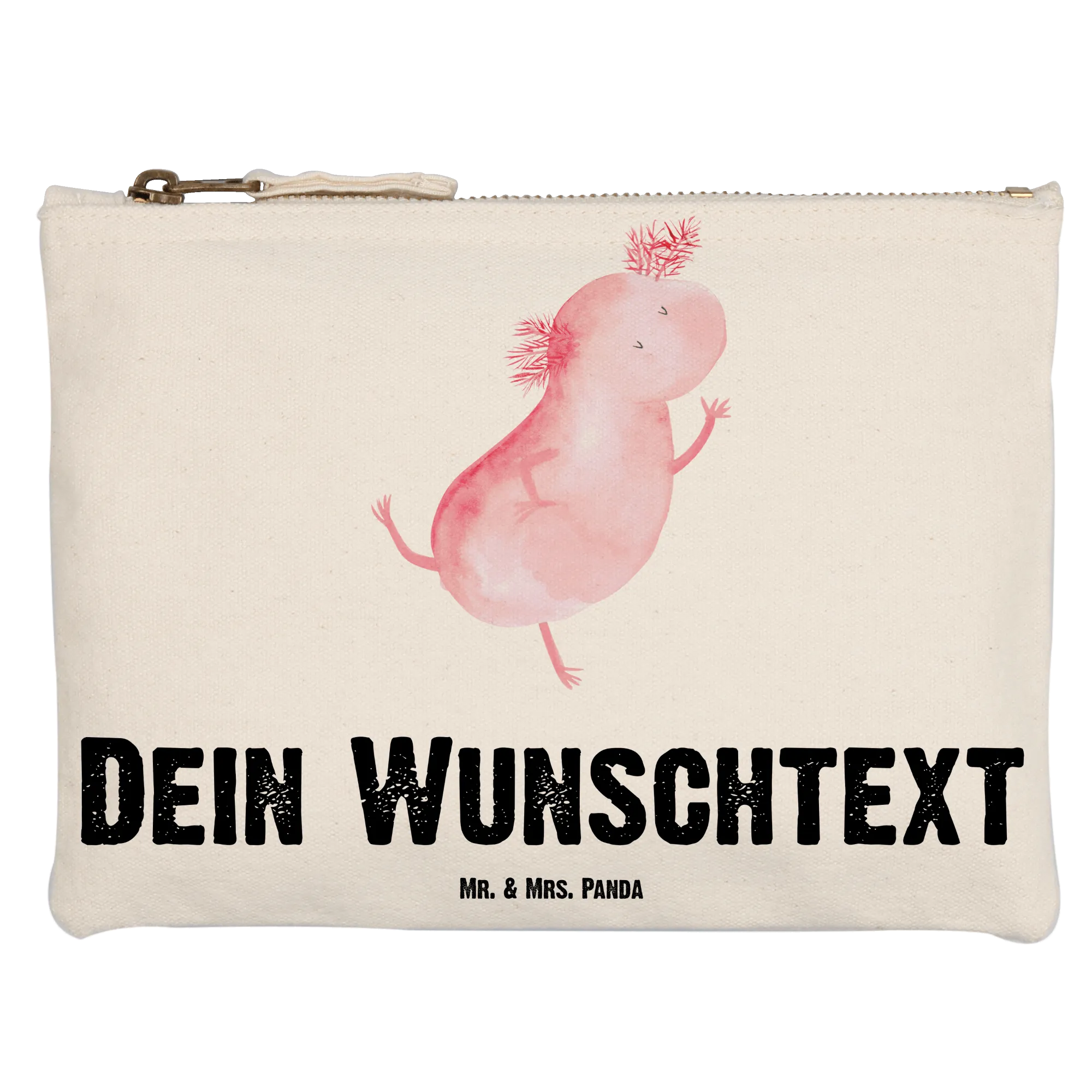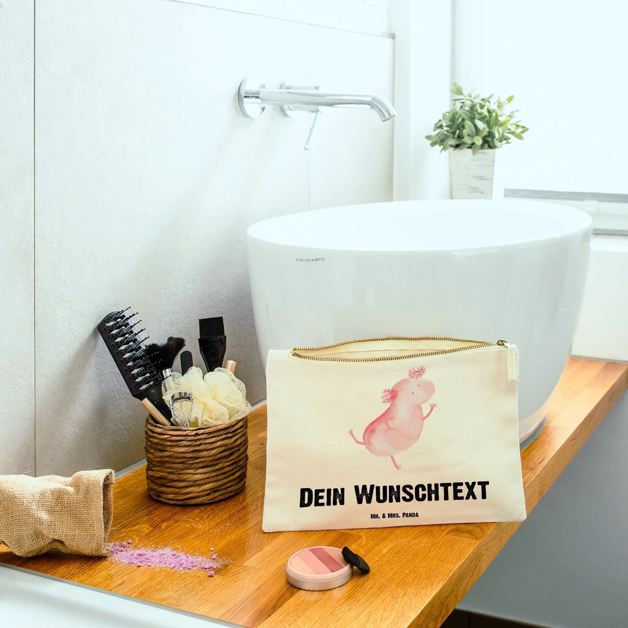 Die personalisierte Schminktasche "Axolotl tanzt" von Mr. & Mrs. Panda ist das perfekte Geschenk für alle, die Freude an kreativen und liebevoll gestalteten Accessoires haben.