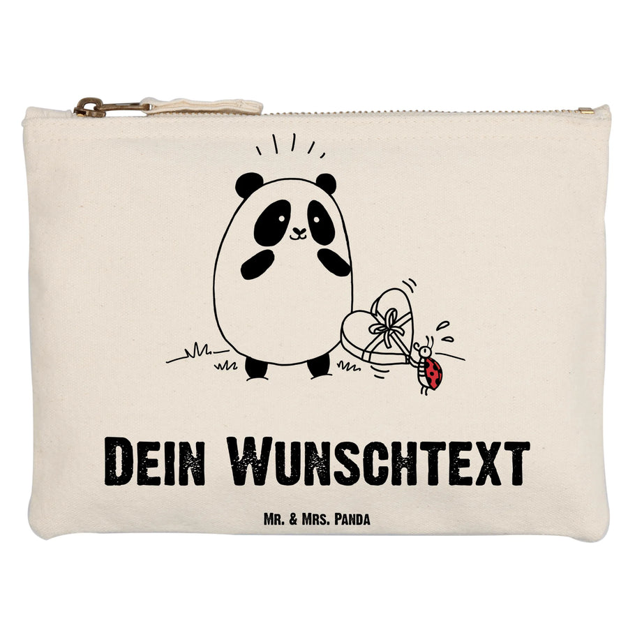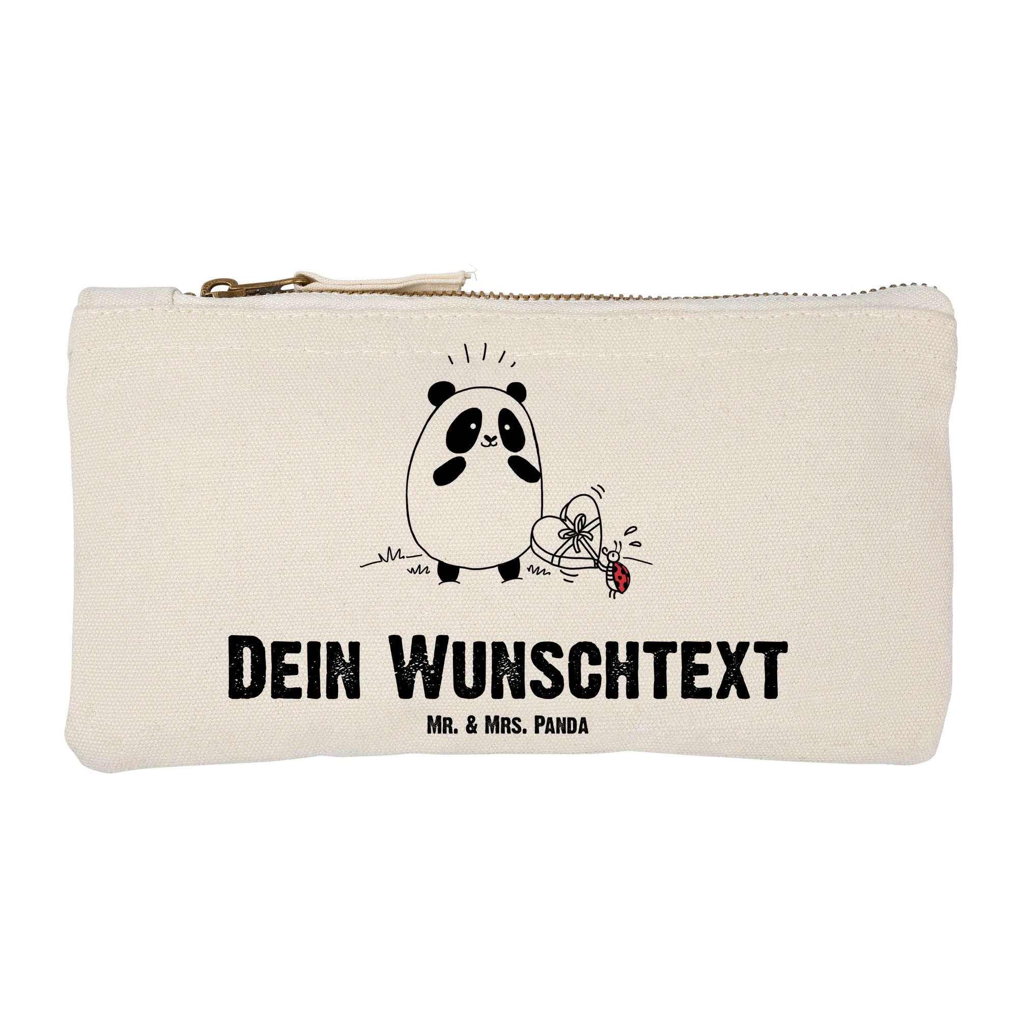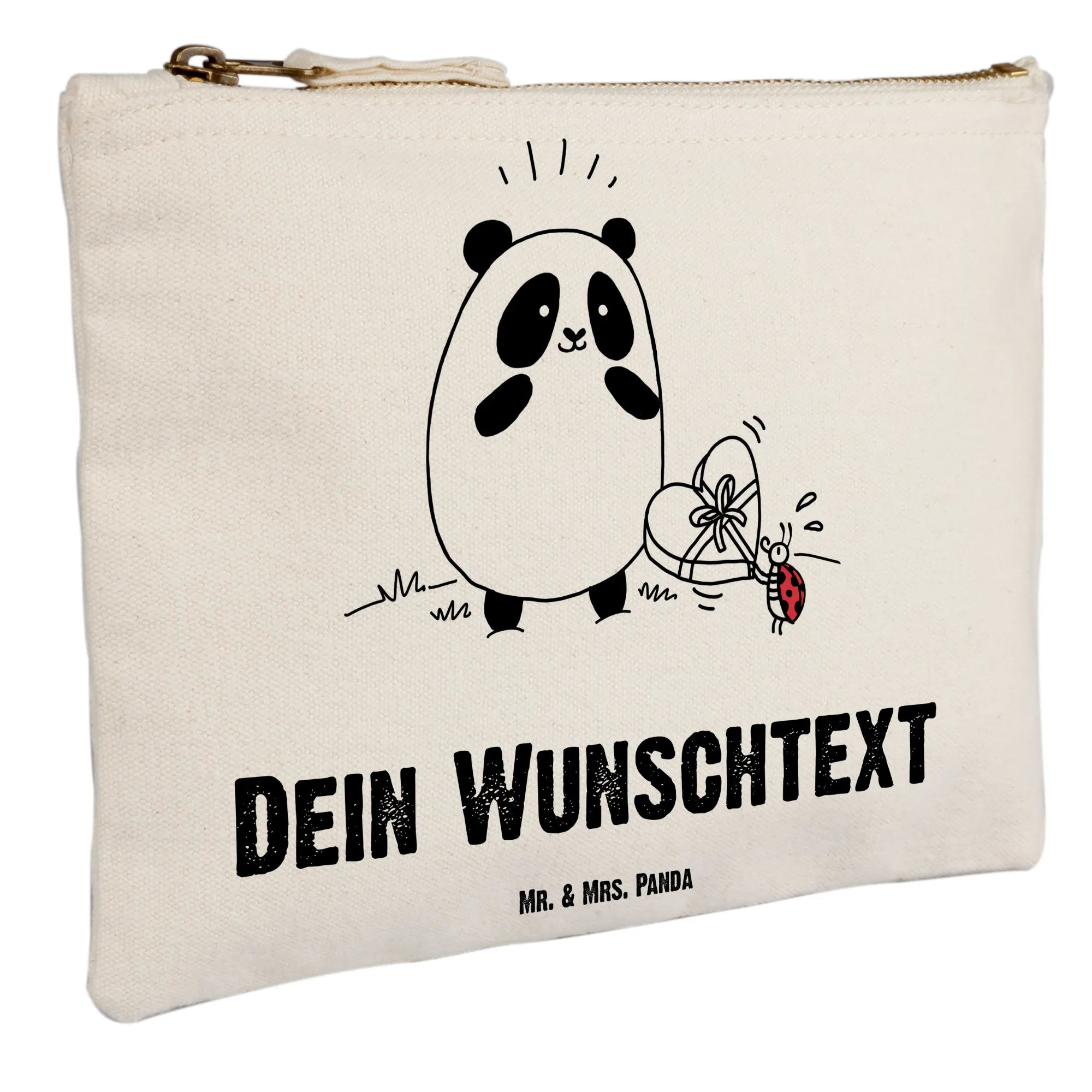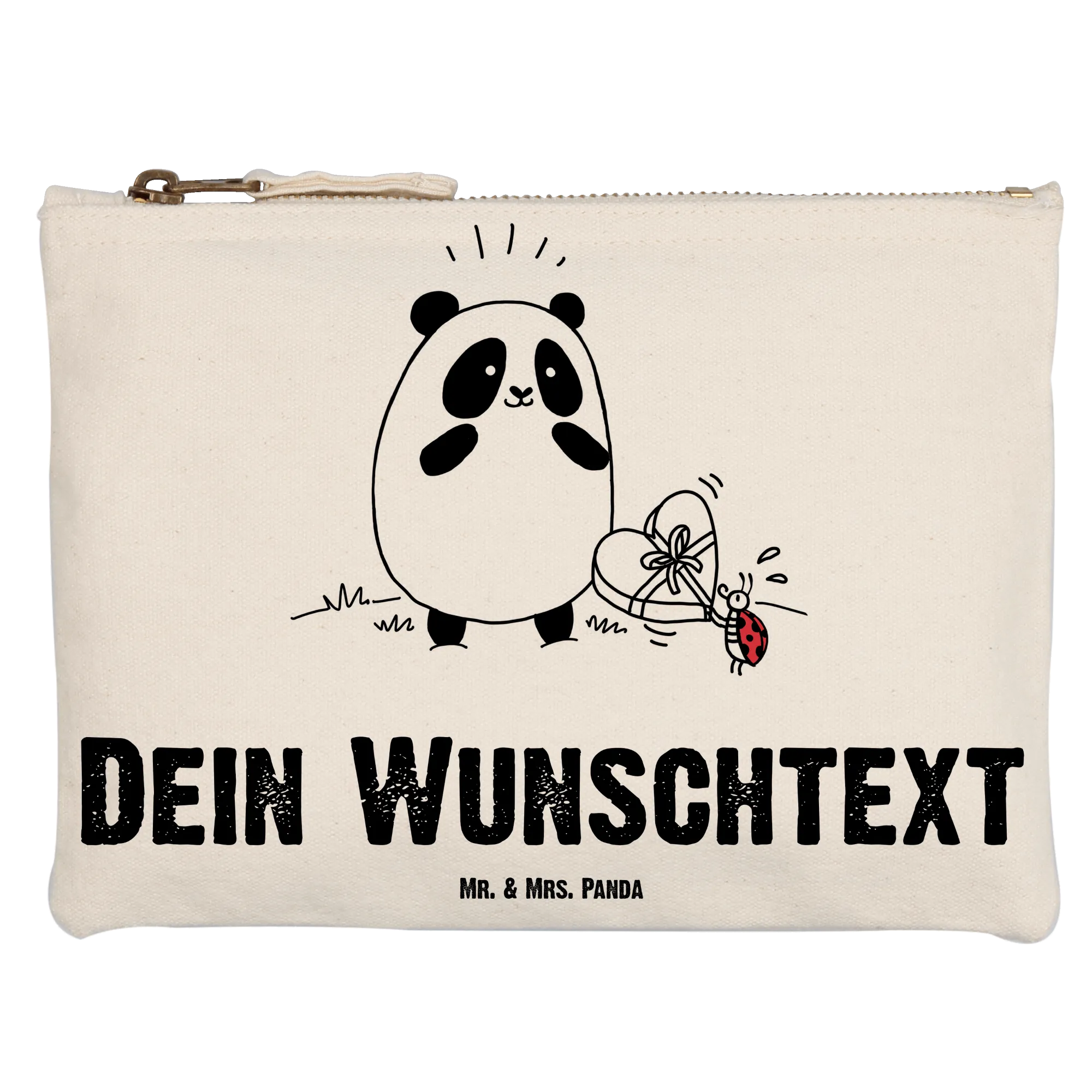 Entdecke die personalisierte Schminktasche "Easy & Peasy Dankeschön" von Mr. & Mrs. Panda! Diese zauberhafte Kosmetiktasche ist das perfekte Geschenk für deine Freunde, Familie oder für dich selbst. Mit einem fröhlichen Panda, der eine Schachtel Pralinen von einem kleinen Marienkäfer als Dankeschön entgegennimmt, bringt sie ein Lächeln in jeden Alltag.