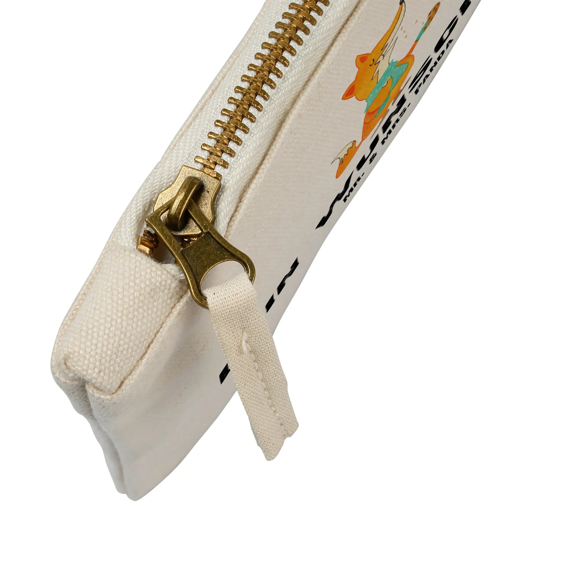 Werde kreativ mit der personalisierten Schminktasche von Mr. & Mrs. Panda! Diese Tasche aus 100% weicher Baumwolle ist ein wahres Allroundtalent – sei es für deine Kosmetikartikel, als stylisches Aufbewahrungsetui für Stifte oder als nützliche Belegtasche. Du kannst sie mit deinem Namen oder einem persönlichen Spruch ganz nach deinen Wünschen gestalten. Hochwertig bedruckt mit süßen Designs wird sie dein ständiger Begleiter im Alltag. Durch die umsäumten Innennähte bleibt sie immer in Form und sieht auch nach häufigem Gebrauch noch gut aus. Um die Langlebigkeit der Farben und das Design zu bewahren, wähle die lauwarme Handwäsche als Pflegeoption. Egal ob selbst genutzt oder verschenkt, diese Tasche wird Herzen erobern!