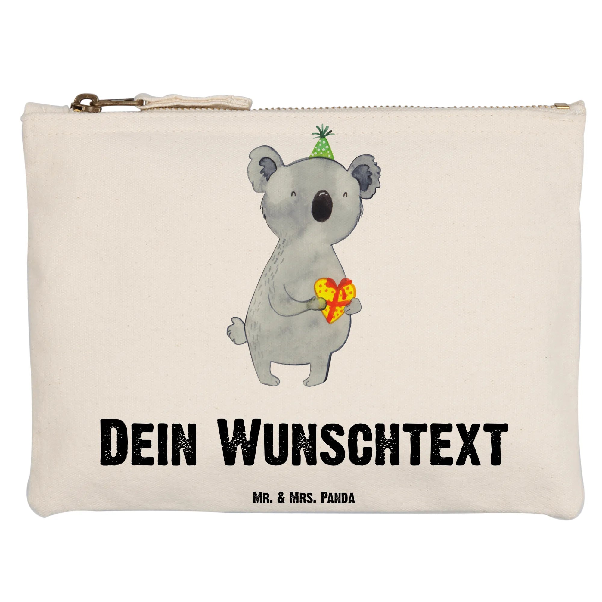 Entdecke die zauberhafte, personalisierte Schminktasche von Mr. & Mrs. Panda, die perfekt für alle großen und kleinen Schminkliebhaber ist! Diese wunderschöne Tasche kommt im liebevollen Koala Design, das nicht nur die süßen Koalas mit ihrem freundlichen Lächeln darstellt, sondern auch einen kleinen Partyhut trägt und ein Herzgeschenk in den Händen hält. So wird jedes Makeup-Set zum echten Hingucker!