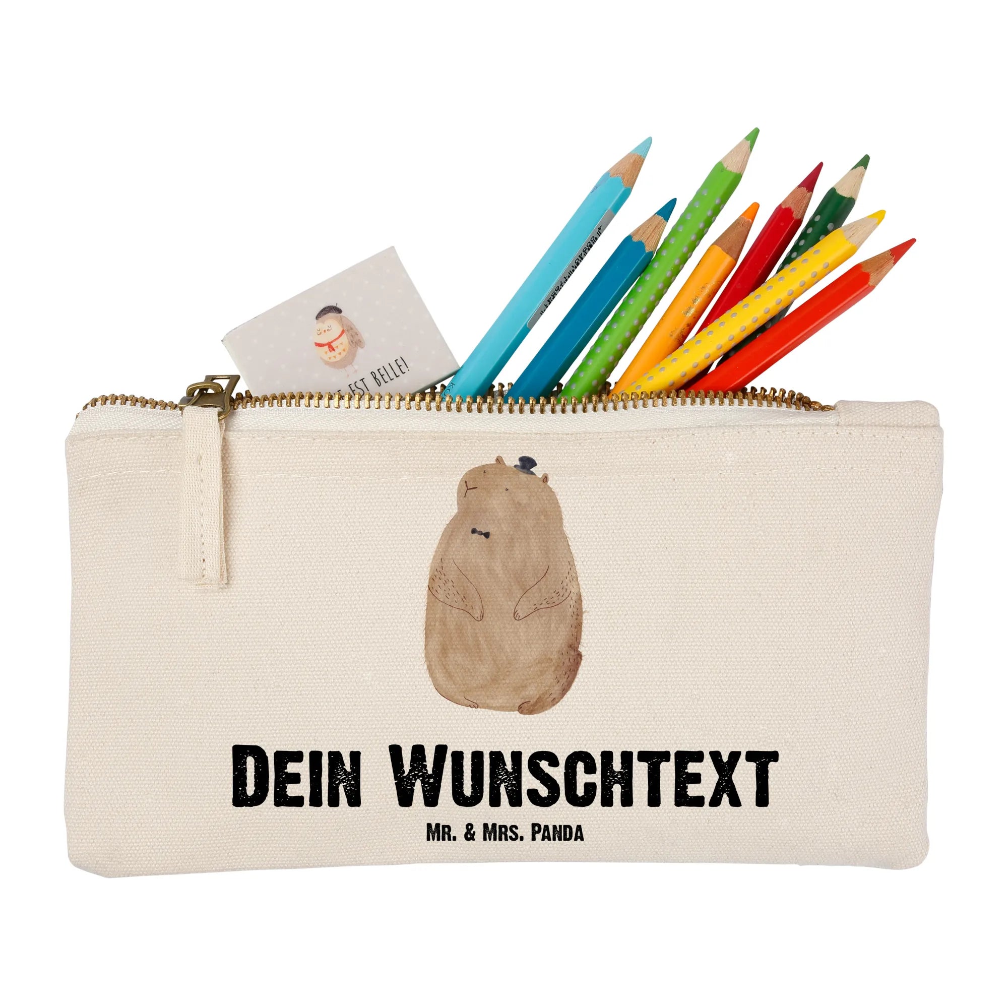Entdecke die bezaubernde, personalisierte Schminktasche von Mr. & Mrs. Panda! Diese hochwertige Tasche ist liebevoll mit süßen Motiven und Sprüchen bedruckt. Sie ist nicht nur ein Blickfang, sondern auch praktisch. Mit deinem Wunschnamen oder Wunschspruch wird sie zu einem ganz besonderen Accessoire. Die Schminktasche ist ideal für all deine Kosmetikartikel und kann auch verwendet werden, um Belege zu sammeln oder als Stiftemäppchen. Dank der verschiedenen erhältlichen Maße findest du die perfekte Größe für dich. Das weiche Material aus 100% Baumwolle sorgt dafür, dass deine Utensilien bestens geschützt sind. Eine besondere Besonderheit sind die umsäumten und eingeschlagenen Innennähte, die für Formbeständigkeit sorgen. Pflege deine Tasche einfach mit einer lauwarmen Handwäsche, um viele Jahre Freude daran zu haben!