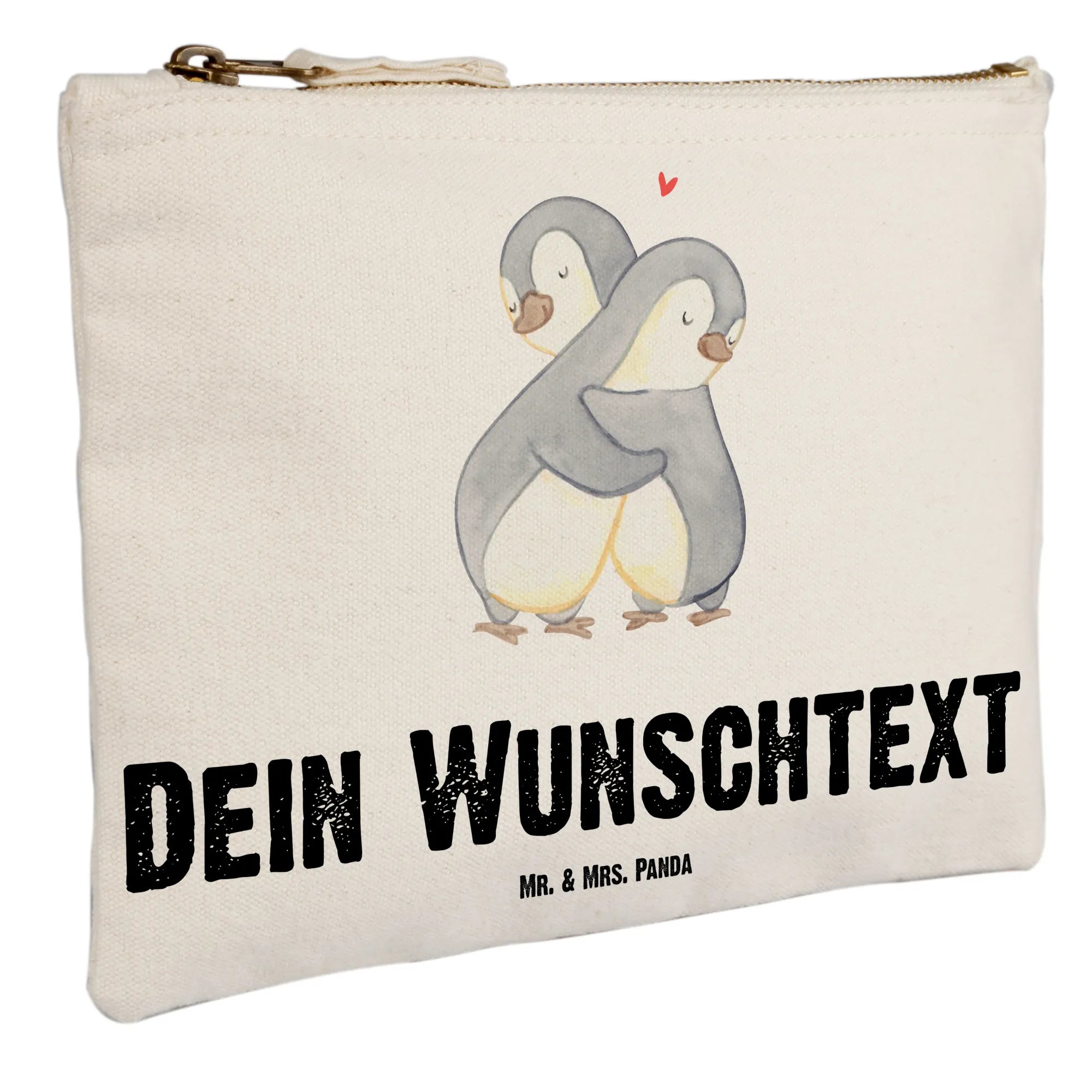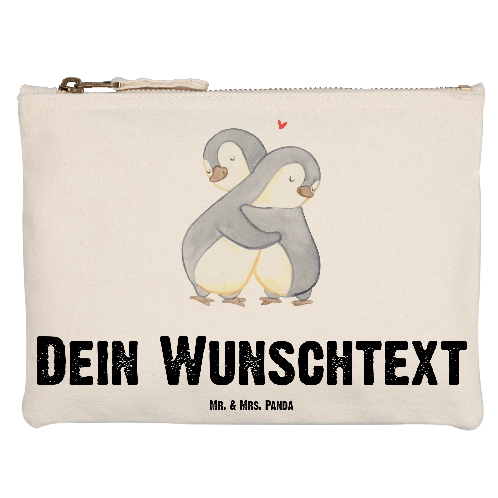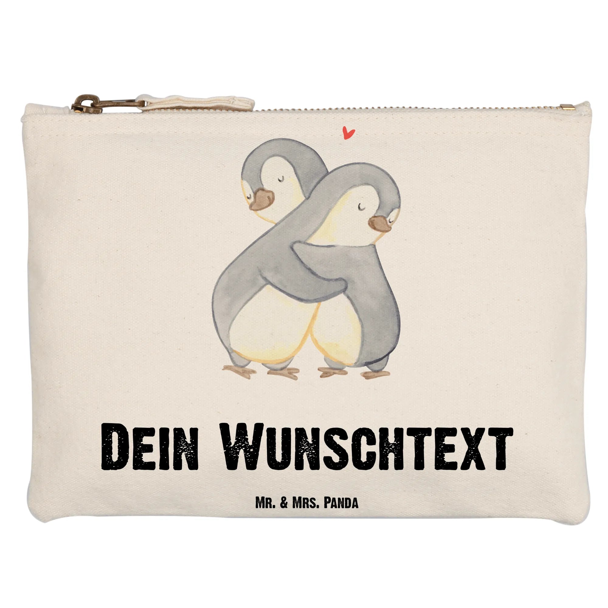 Die personalisierte Schminktasche "Pinguine Kuscheln" von Mr. & Mrs. Panda ist das perfekte Geschenk für alle, die geliebt werden und sich gerne schön machen. Mit ihrem zauberhaften Design, das ein paar innig umarmender Pinguine zeigt, bringt sie jeden Tag ein Lächeln ins Gesicht.