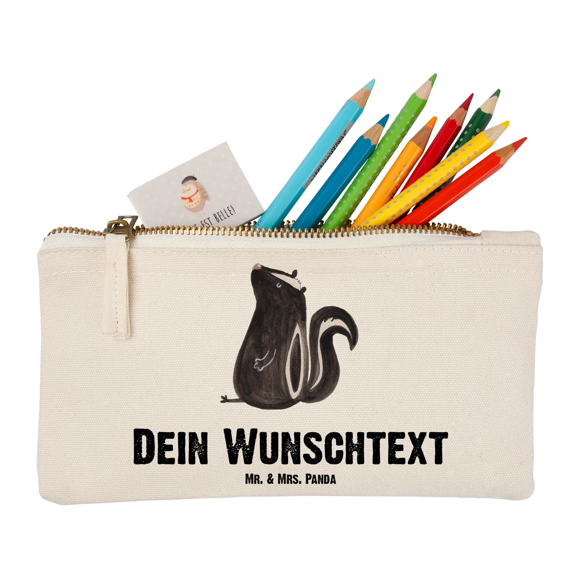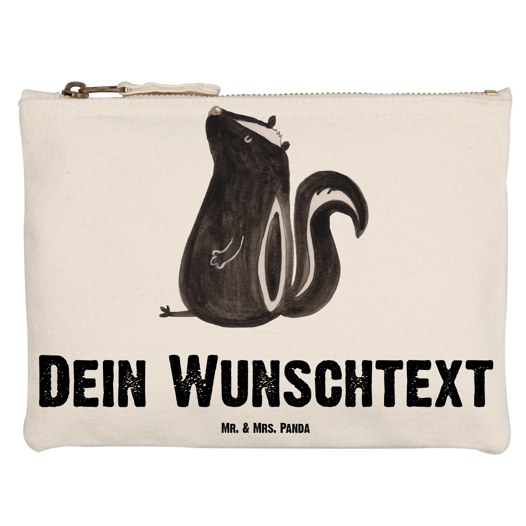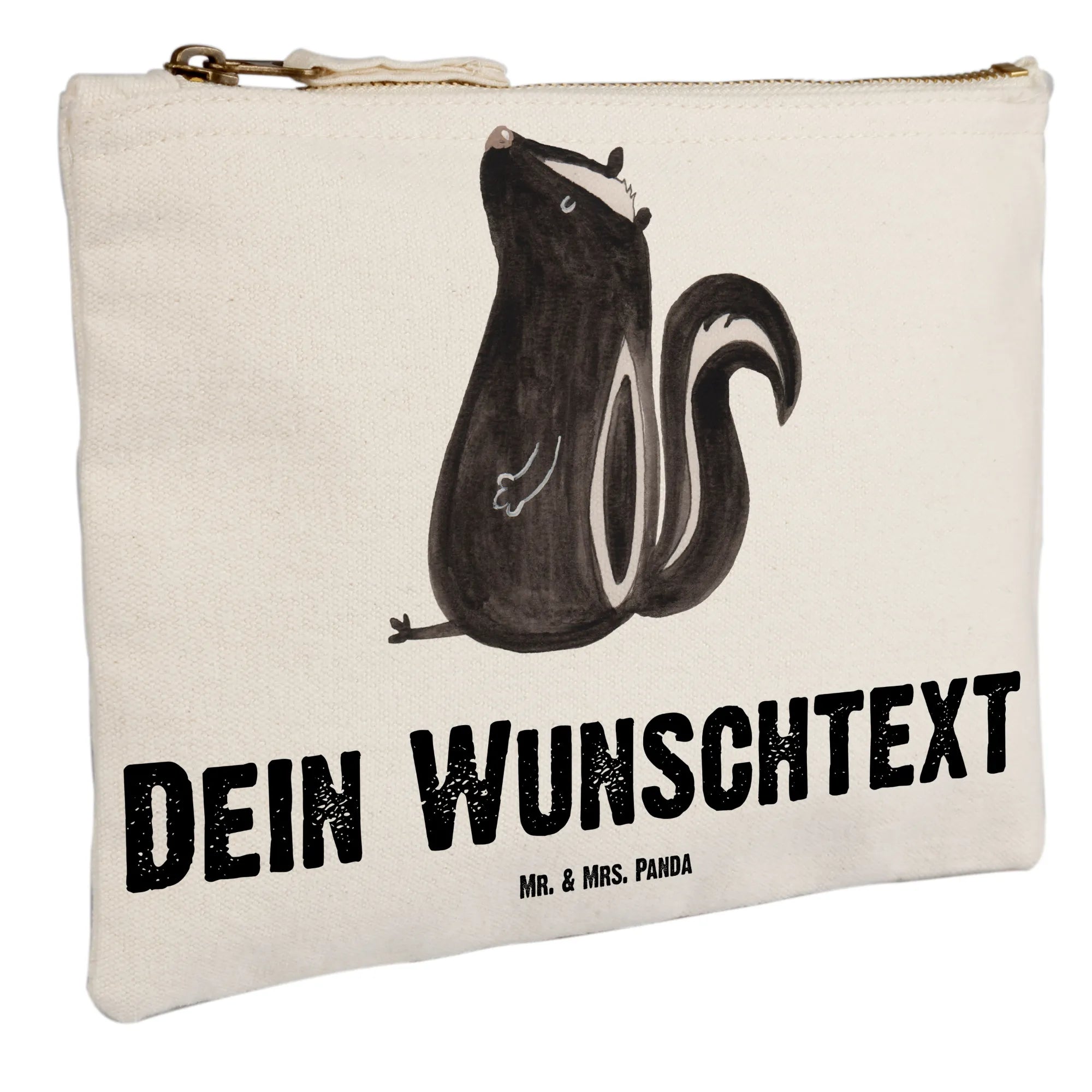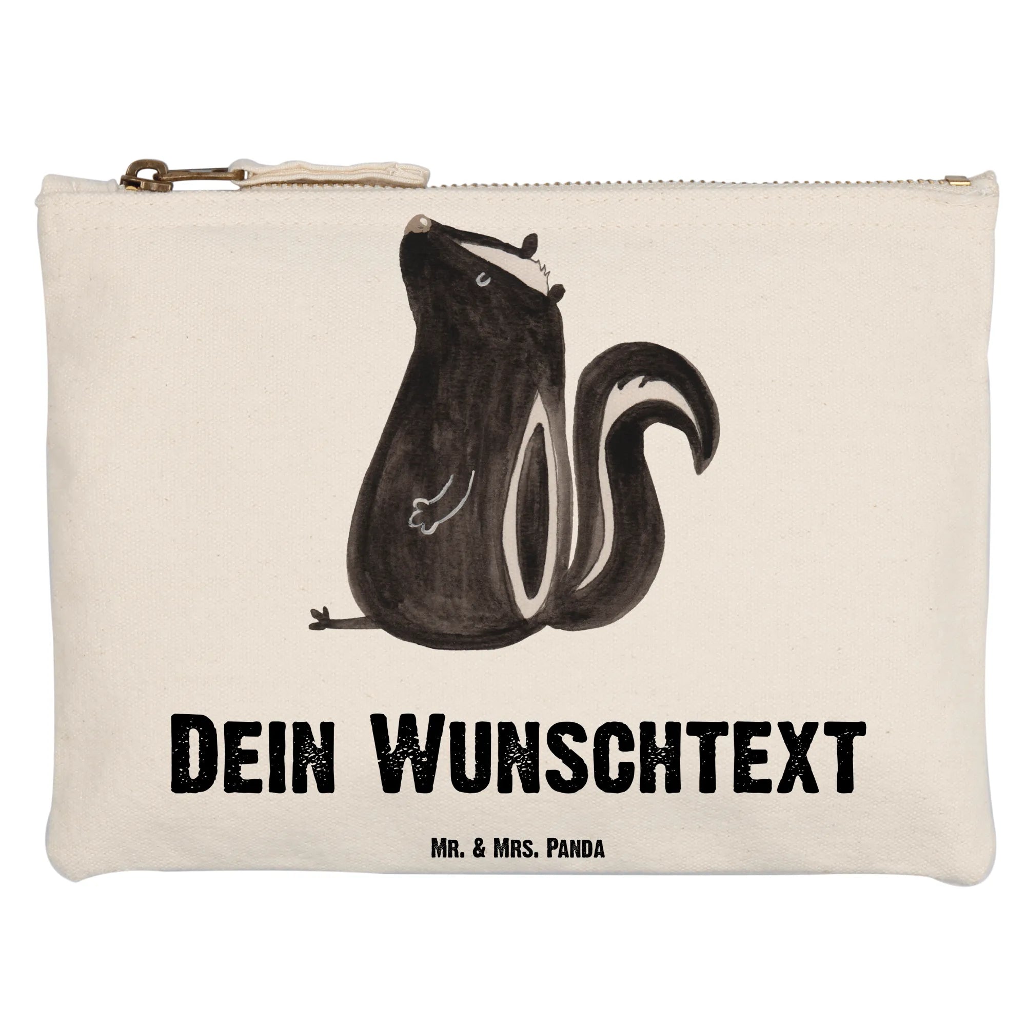 Die personalisierte Schminktasche mit dem süßen, sitzenden Stinktier Motiv aus der Stinktier-Kollektion von Mr. & Mrs. Panda ist das perfekte Geschenk für alle, die das Besondere lieben! Ob für die beste Freundin, die Schwester oder die Mutter - diese wunderschöne Kosmetiktasche ist ein echter Hingucker.