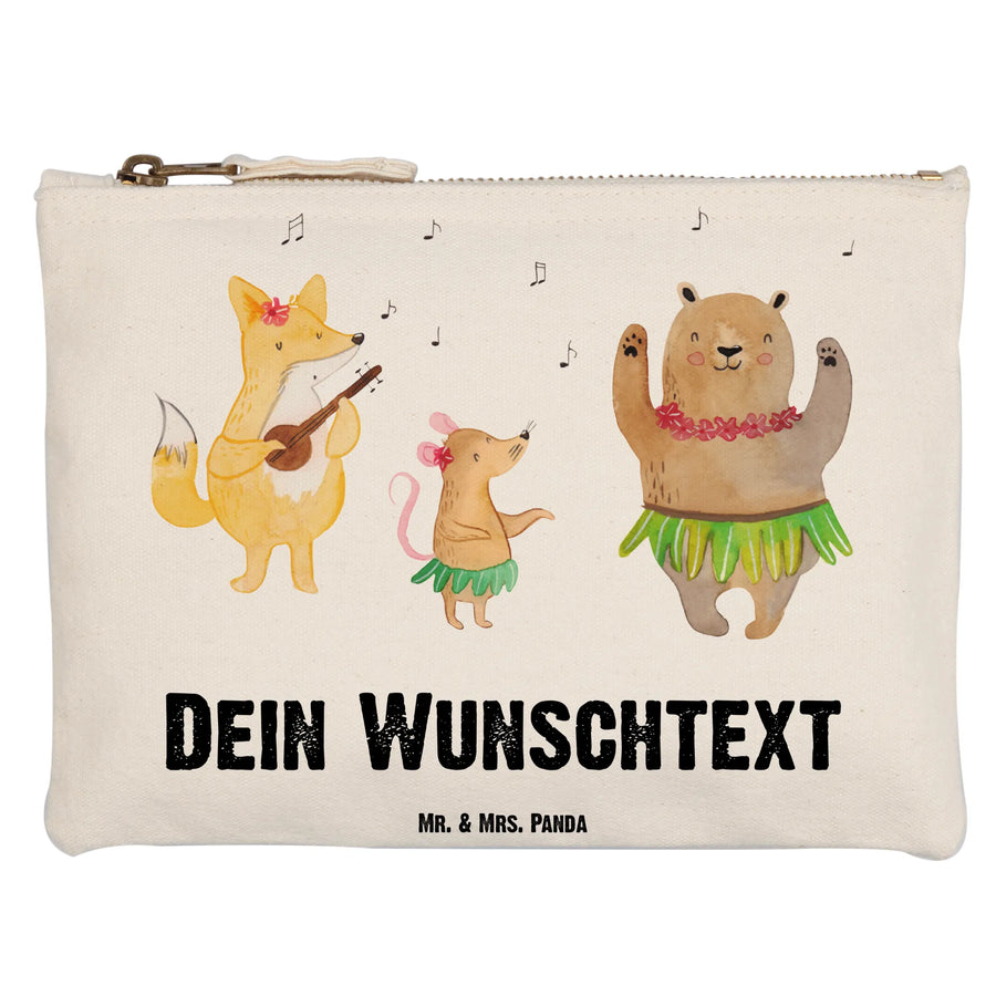 Mit einem süßen Waldtier-Motiv, das die tierischen Freunde in Hula-Röcken zeigt, zaubert die Tasche ein Lächeln auf dein Gesicht und versetzt dich in Urlaubsstimmung, egal wo du bist. Ob für eigene Kosmetikartikel, als Stiftemäppchen oder um Belege zu sammeln – die vielseitige Schminktasche ist ideal geeignet.
