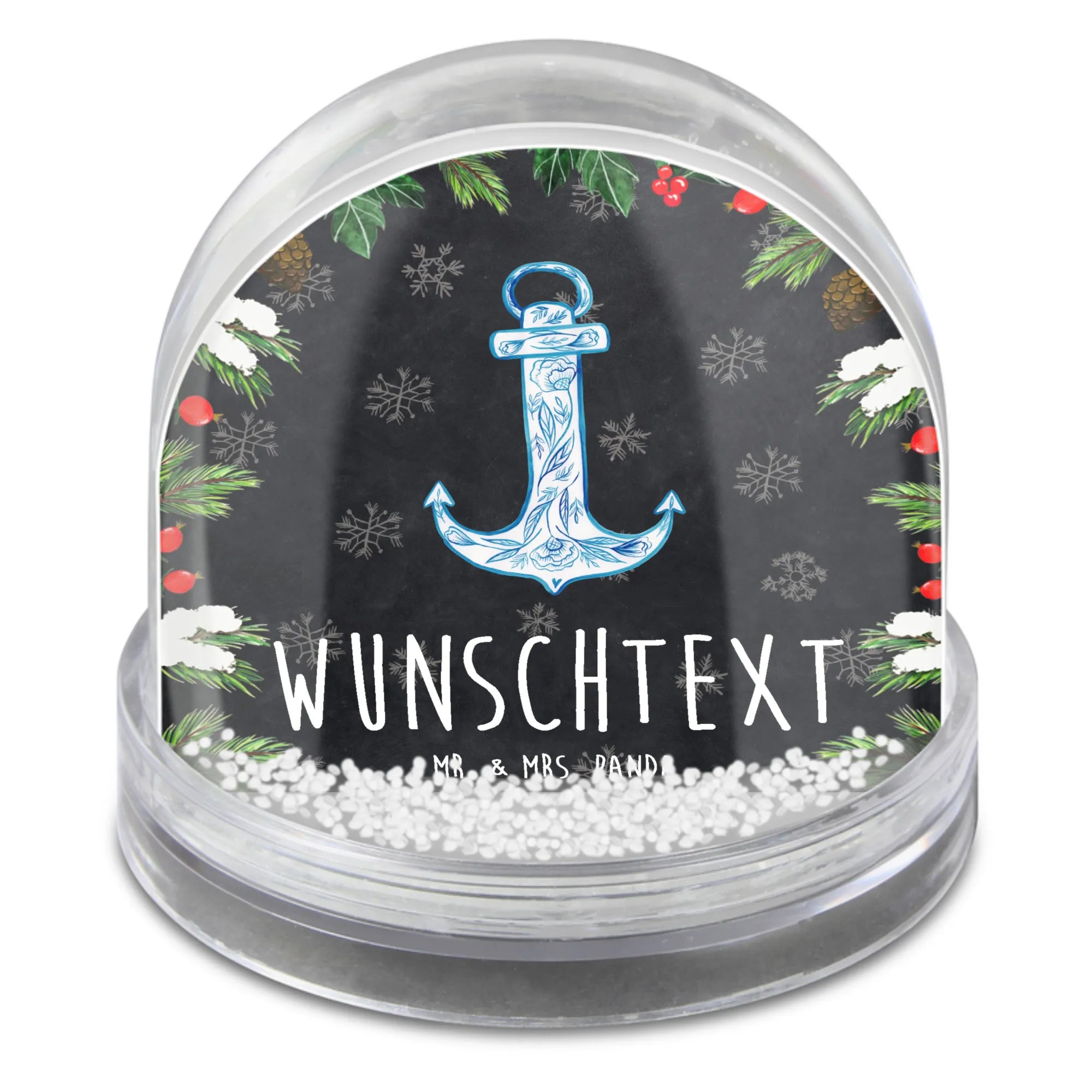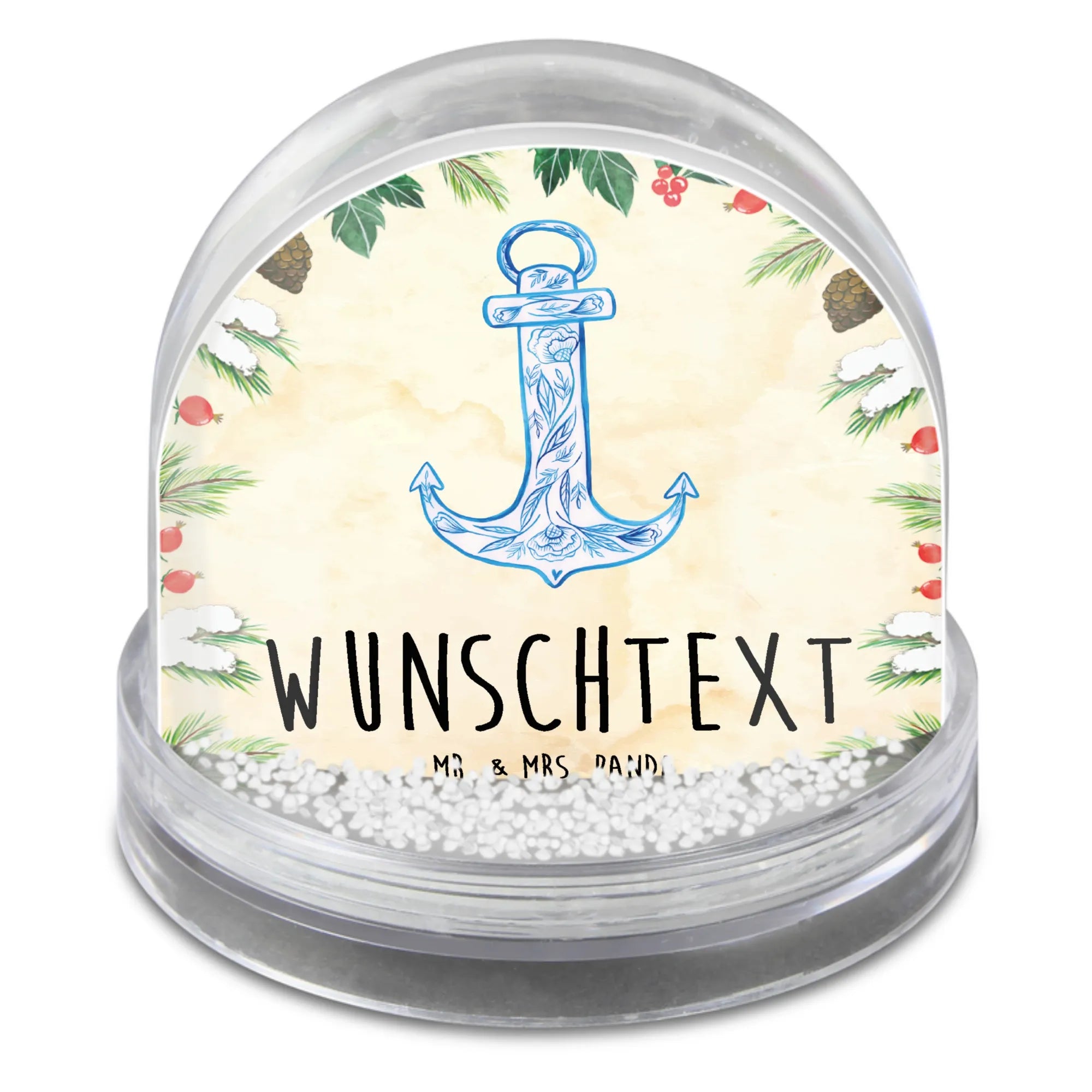Personalisierte Schneekugel Anker Blau - Naturpapier