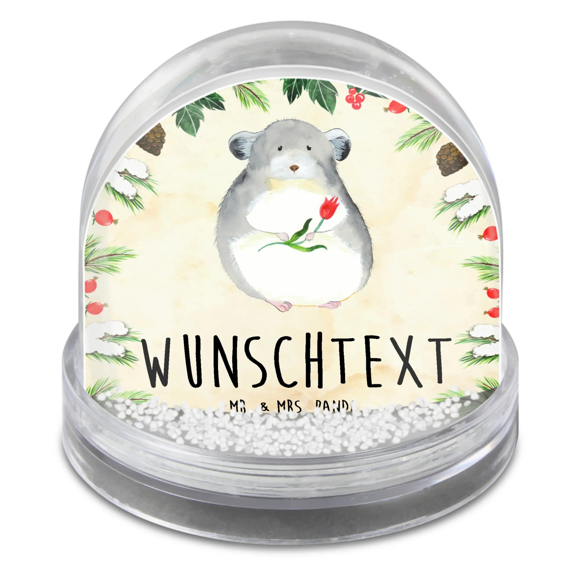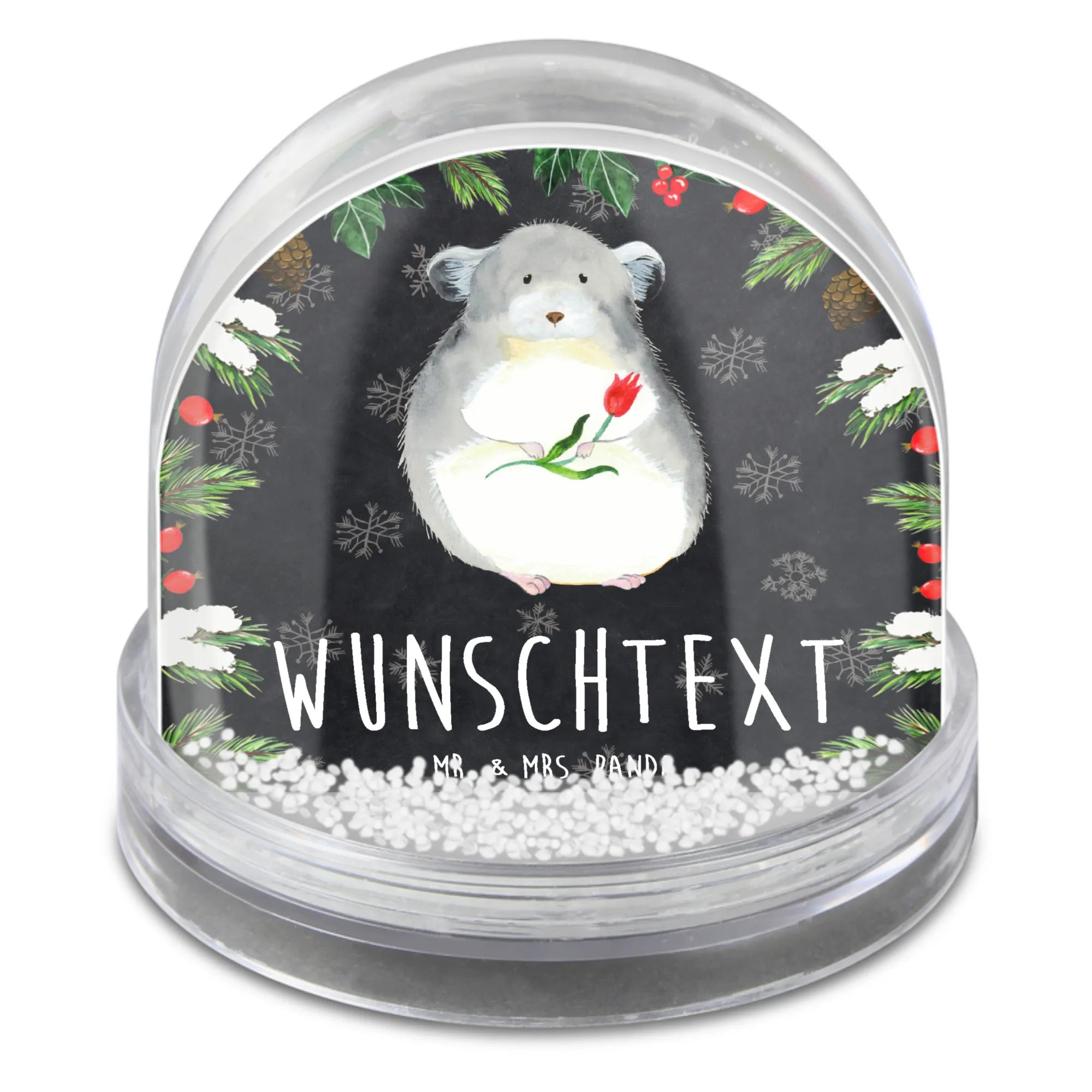 Die personalisierte Schneekugel 'Chinchilla mit Blume' von Mr. & Mrs. Panda ist das ideale Geschenk für alle, die das Glücklichsein inmitten des Alltags nicht vergessen möchten. Egal, ob für einen lieben Freund, ein Familienmitglied oder einfach für dich selbst – diese einzigartige Schneekugel bringt Freude und gute Laune in jeden Raum!
