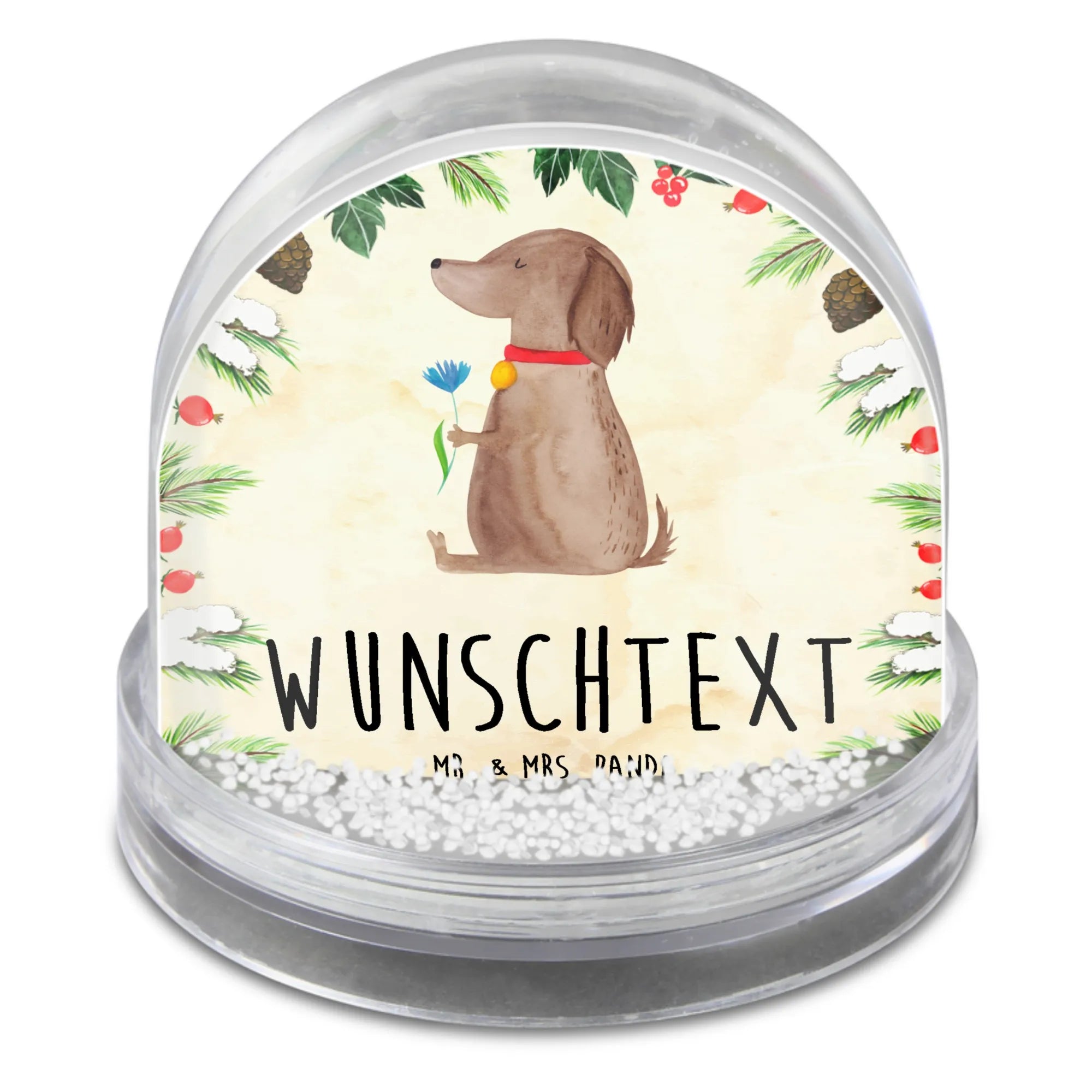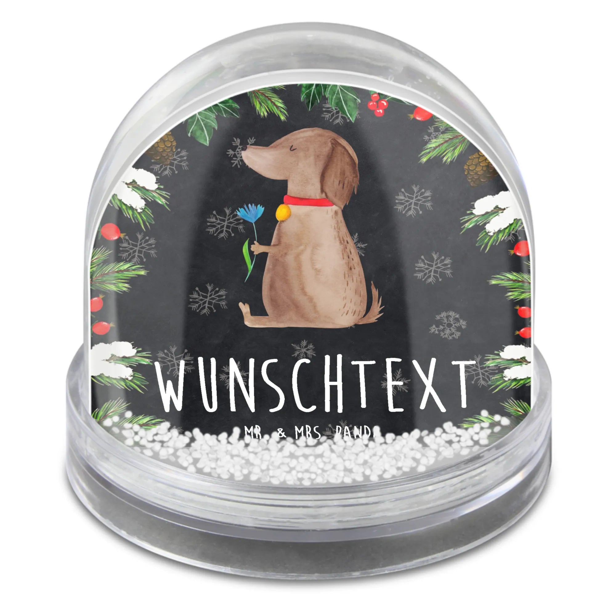 Personalisierte Schneekugel Hund Blume – Mr. & Mrs. Panda