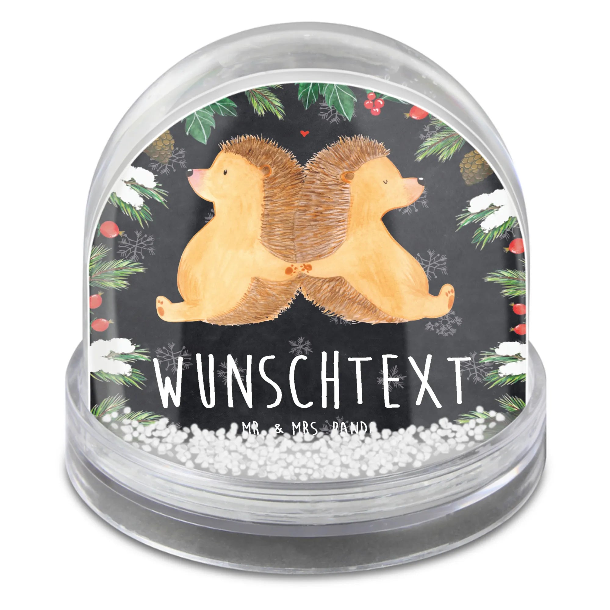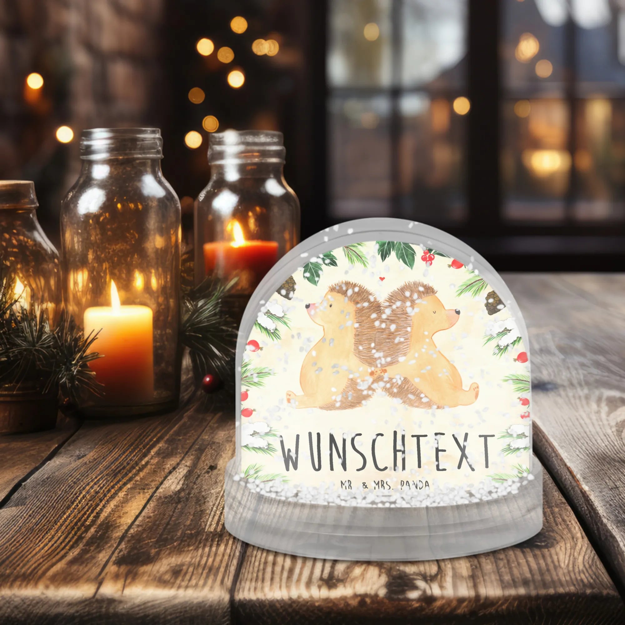 Personalisierte Schneekugel Igel händchenhaltend - Naturpapier