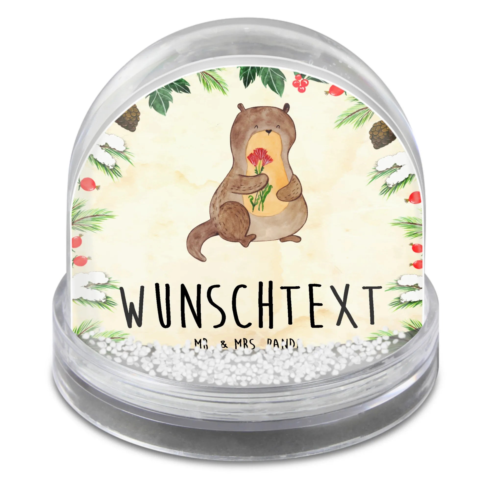 Personalisierte Schneekugel Otter Blumenstrauß – Mr. & Mrs. Panda