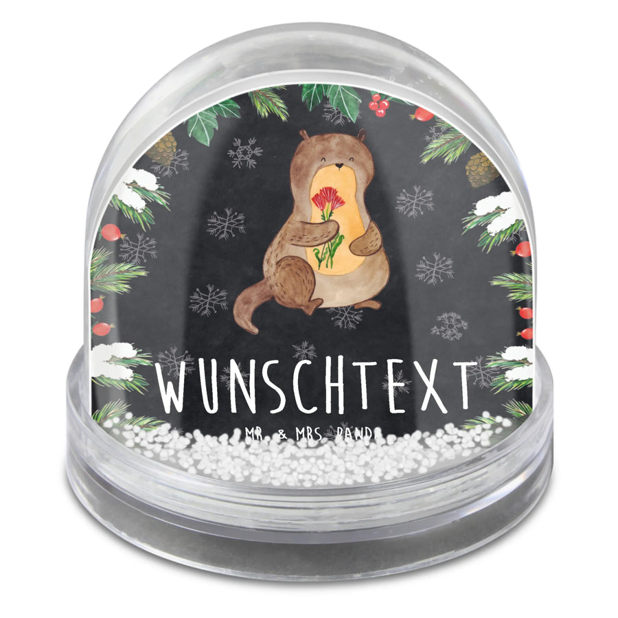 Personalisierte Schneekugel Otter Blumenstrauß - Kreidetafel