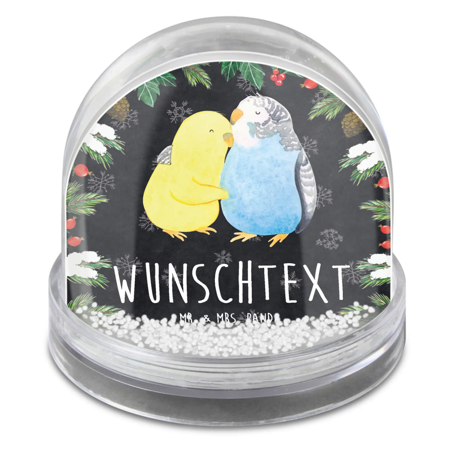 Personalisierte Schneekugel Wellensittich Liebe - Kreidetafel