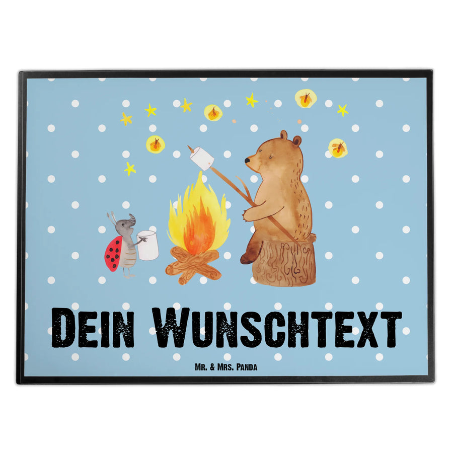 Personalisierte Schreibtischunterlage Bär & Marienkäfer Lagerfeuer