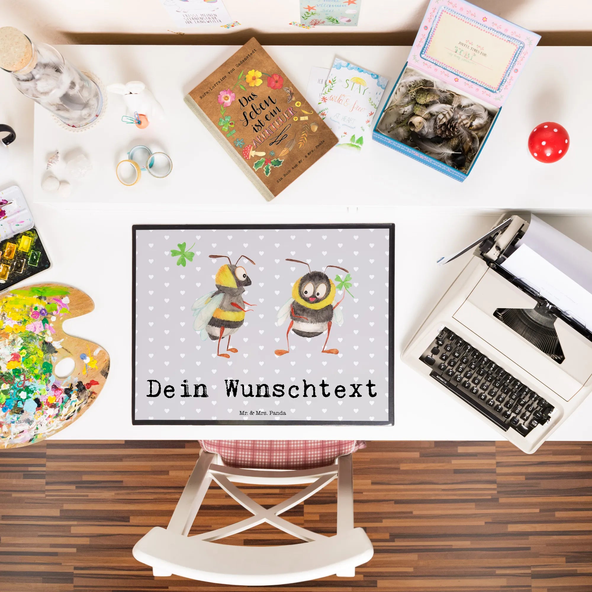 Entdecke die wunderbare Welt der personalisierten Schreibunterlagen mit dem bezaubernden Motiv der Bienen Paar aus der Kollektion Liebe! Diese personalisierte Schreibtischauflage von Mr. & Mrs. Panda ist das perfekte Geschenk für deine Liebsten, egal ob für den Valentinstag, den Jahrestag oder einfach so als Zeichen deiner Zuneigung.