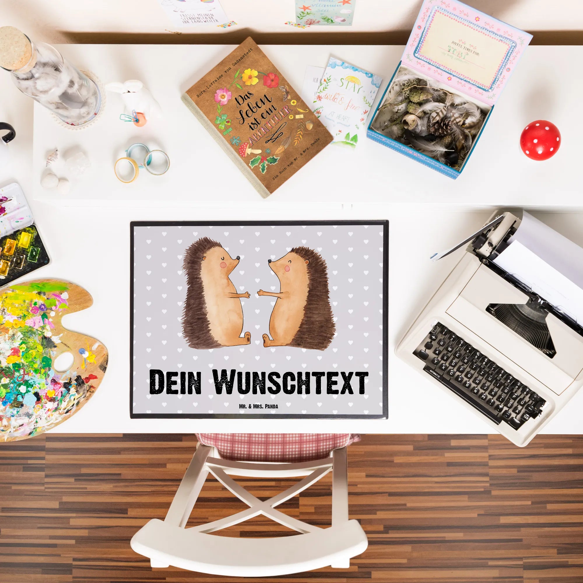 Die personalisierte Schreibtischunterlage mit dem bezaubernden Motiv "Igel Liebe" von Mr. & Mrs. Panda ist das perfekte Geschenk für alle, die ihre Liebe ausdrücken möchten. Egal ob für den Freund, die Freundin, den Ehemann oder die Ehefrau – dieses einzigartige Produkt verbindet praktische Nutzung mit romantischen Gefühlen.