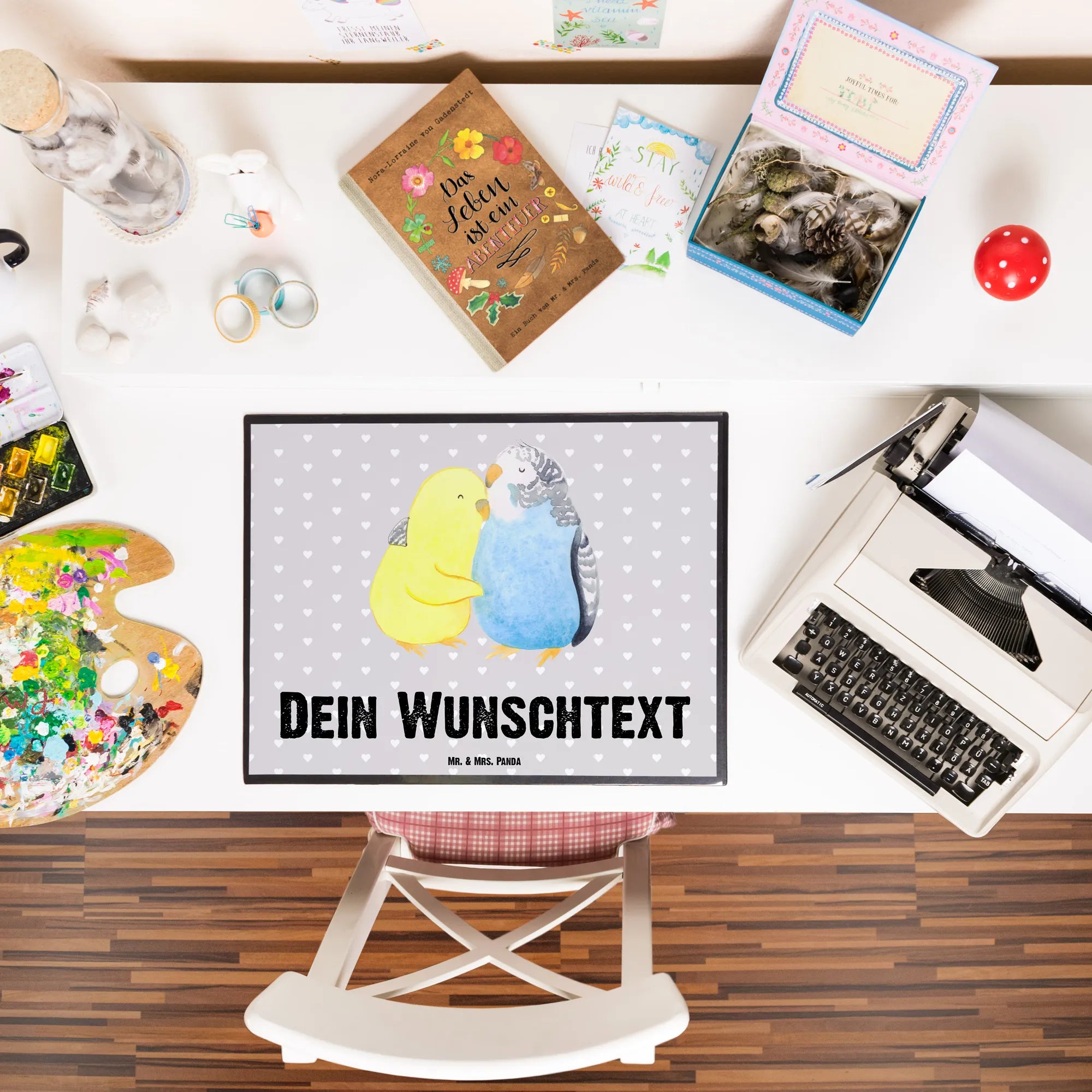 Personalisierte Schreibtischunterlage Wellensittich Liebe