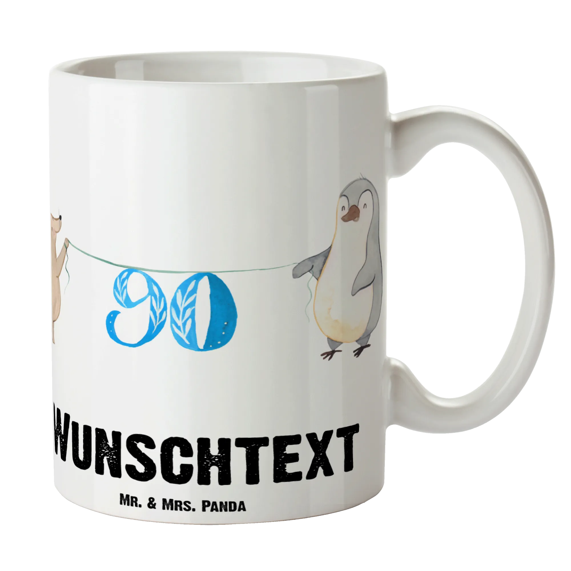 Personalisierte Tasse 90. Geburtstag Maus Pinguin – Mr. & Mrs. Panda