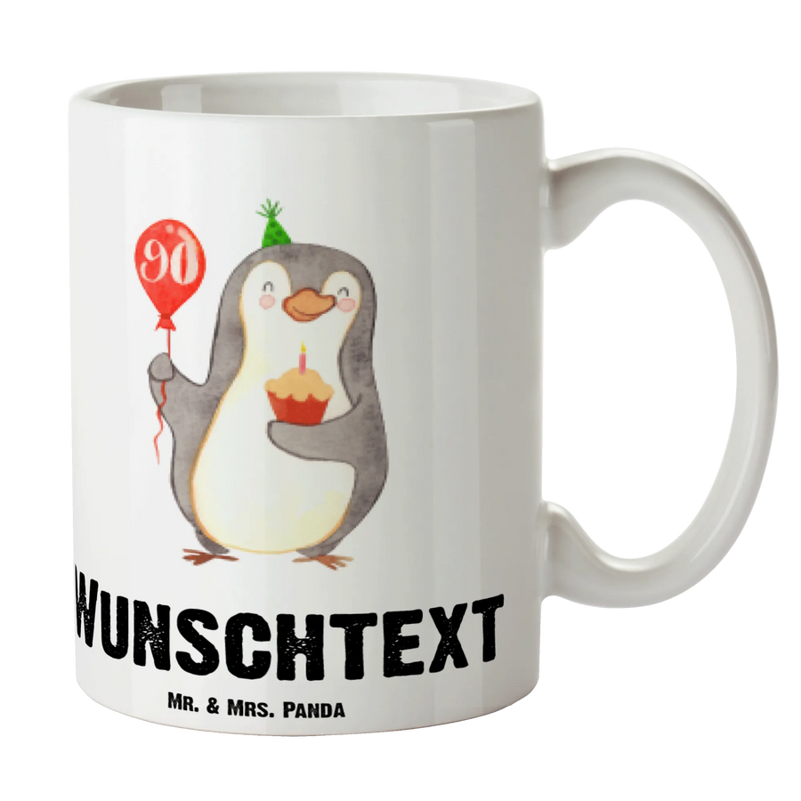 Personalisierte Tasse 90. Geburtstag Pinguin Luftballon