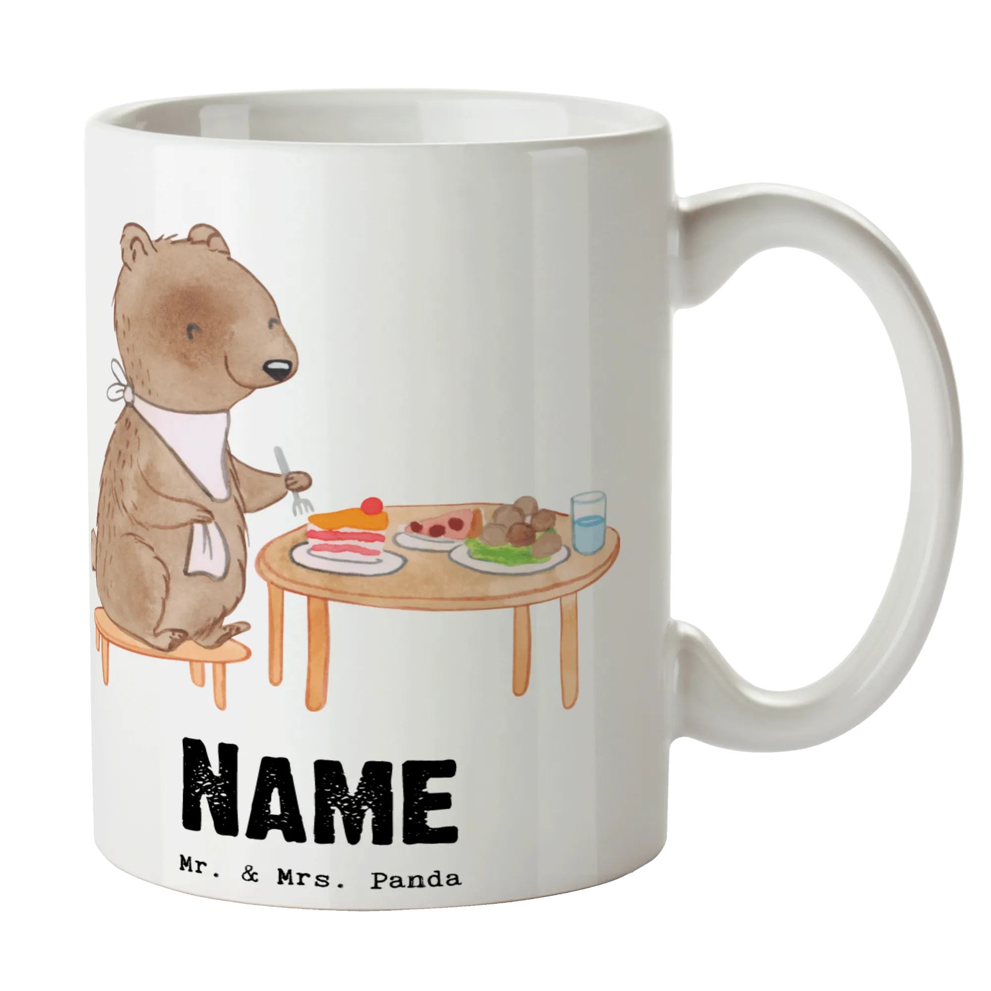 Die personalisierte Tasse mit dem niedlichen Motiv "Bär Essen gehen Tage" von Mr. & Mrs. Panda ist das perfekte Geschenk für all die Genießer und Hobby-Köche da draußen! Ob für den besten Freund, Deine Lieblingskollegin oder als kleine Aufmerksamkeit für die Mama – diese Tasse bringt nicht nur Freude, sondern auch eine Portion Gemütlichkeit in jeden Alltag.