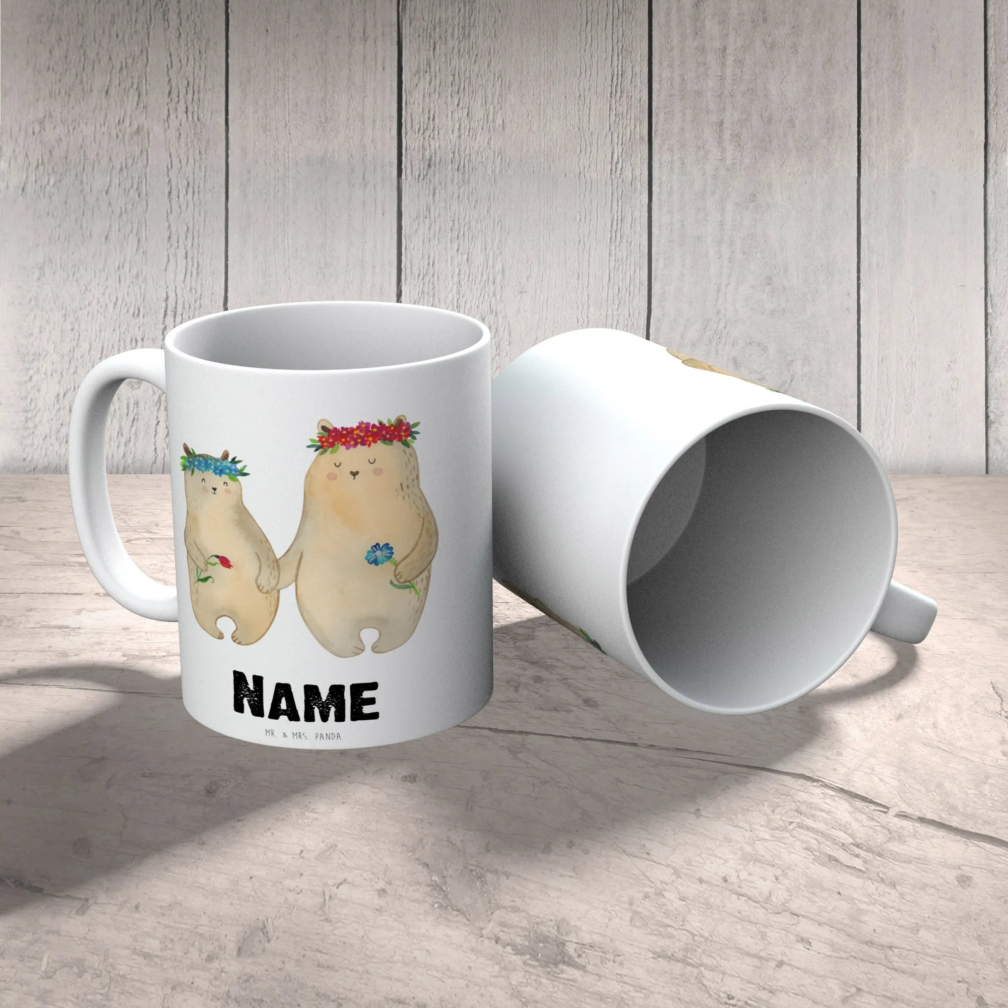Die personalisierte Tasse mit dem Motive der Bären mit Blumenkranz von Mr. & Mrs. Panda ist das perfekte Geschenk für all die wundervollen Mamas da draußen! Egal ob zum Muttertag, Geburtstag oder einfach so, diese Tasse begeistert durch ihr liebevolles Design und die persönliche Note. Die zauberhaften Bären bringen eine fröhliche Botschaft: 'Mama, für mich bist du die Wundervollste!' Mit diesem Satz triffst du genau ins Herz und wirst jede Mama zum Lächeln bringen.