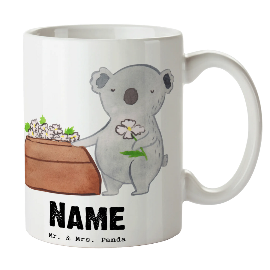 Die Tasse zeigt einen niedlichen Koala, der respektvoll vor einem Sack steht, auf dem Blumen liegen. Mit dem schönen Spruch "Dieser Bestatter begleitet Sie liebevoll mit Herz, Hingabe und Leidenschaft!" wird die besondere Verbindung und Hingabe dieses Berufs perfekt illustriert. Überrasche Deinen Arbeitskollegen, Deine Kollegin oder einen Freund mit dieser einzigartigen Tasse, die ganz individuell mit einem Wunschname versehen werden kann. Die Möglichkeit, einen Namen oder Wunschtext drucken zu lassen, macht dieses Geschenk besonders persönlich.