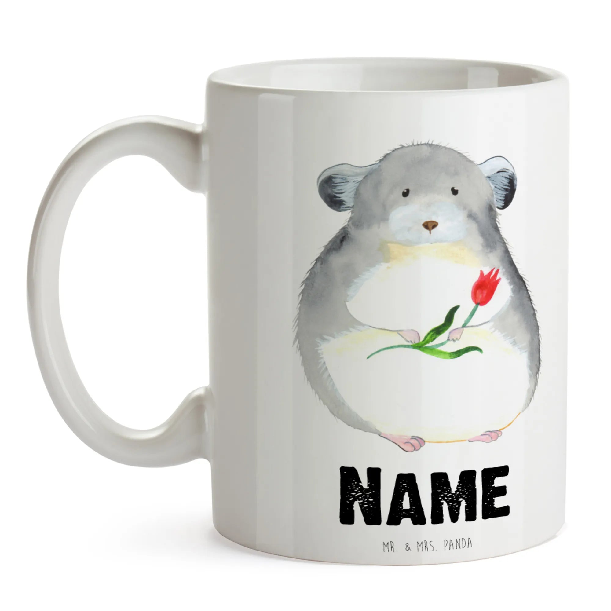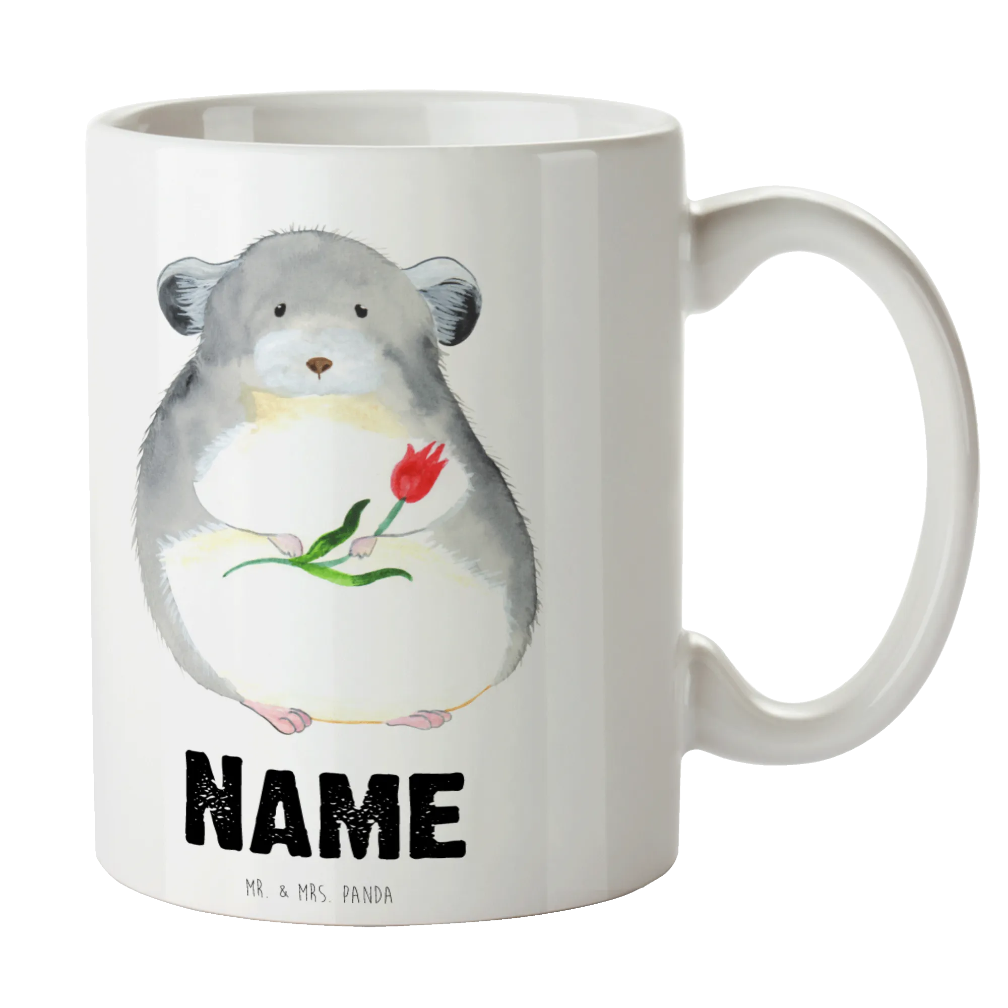 Die personalisierte Tasse 'Chinchilla mit Blume' aus der Small World Kollektion von Mr. & Mrs. Panda ist das perfekte Geschenk für alle, die Freude und Wärme in ihren Alltag bringen möchten. Egal, ob für einen Freund, ein Familienmitglied oder natürlich für dich selbst – diese Tasse ist eine wundervolle Möglichkeit, eine persönliche Note in den täglichen Büroalltag zu bringen.