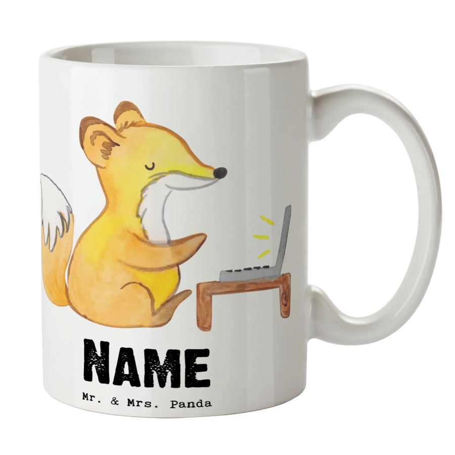 Unsere personalisierte Namenstasse „Destination Manager mit Herz“ aus der Berufe-Kollektion von Mr. & Mrs. Panda ist ein liebevolles, persönliches Geschenk für alle, die ihren Beruf mit Leidenschaft und Humor leben. Das handgezeichnete Aquarellmotiv zeigt unseren niedlichen Fuchs an der Schreibmaschine – ein kleines Kunstwerk von Mrs. Panda. Dazu steht der witzige Spruch: „Du bist nur ein halber Mensch, wenn du keine Destination Manager bist.“