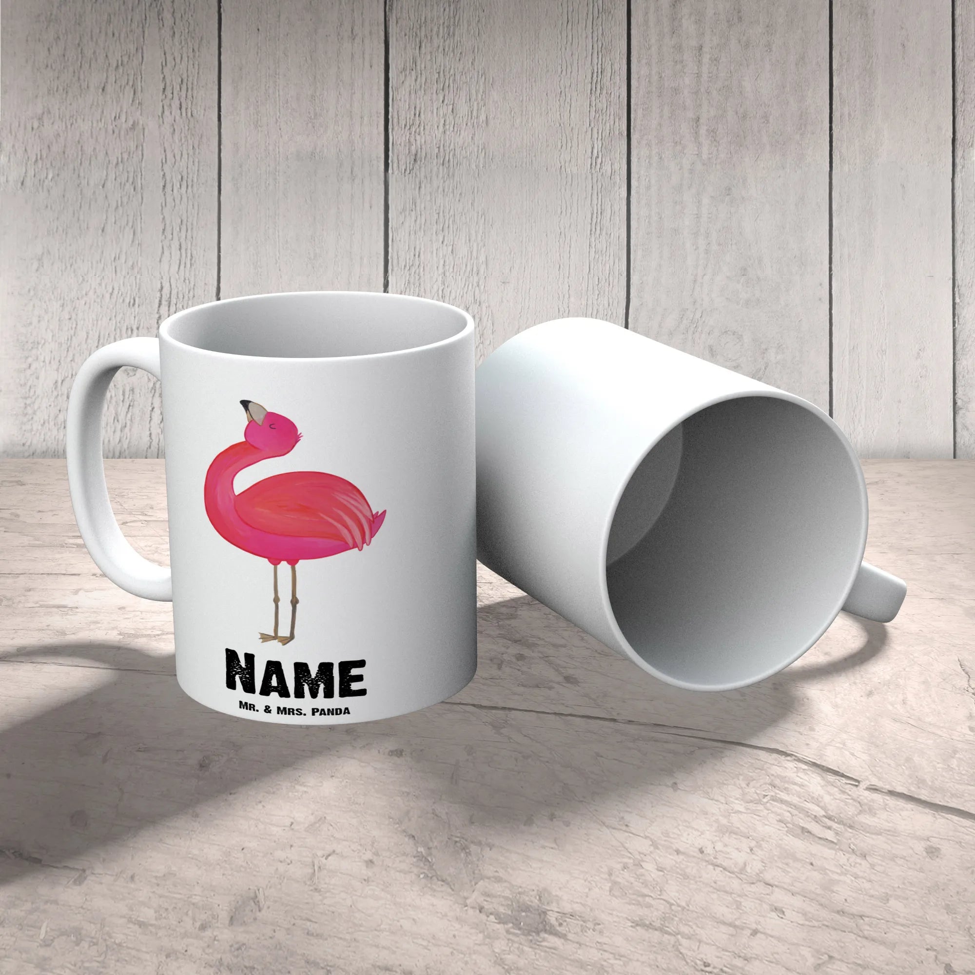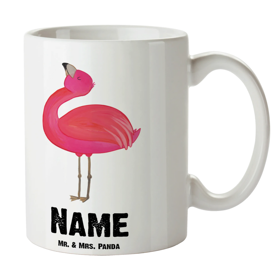 Die personalisierte Tasse "Flamingo stolz" aus der Flamingo-Kollektion von Mr. & Mrs. Panda ist das perfekte Geschenk für all jene, die Freude und Selbstliebe ausstrahlen möchten. Egal ob für deine beste Freundin, deine Schwester, Tochter oder Mama - diese Tasse begeistert mit einem einzigartigen Flamingo-Design, das Sommer, Sonne und gute Laune verkörpert.