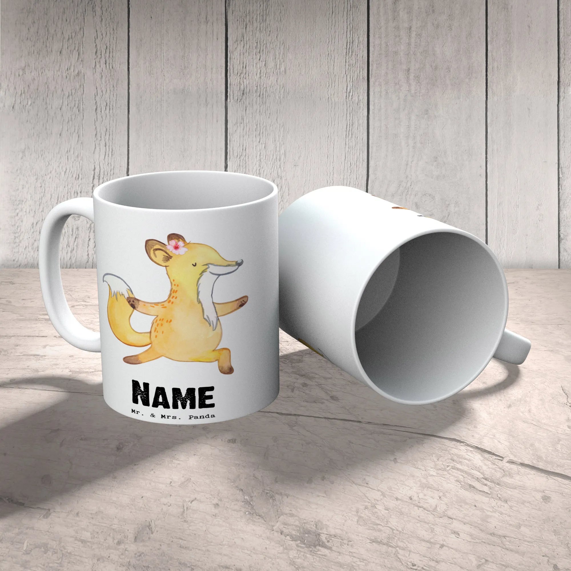 Mit einem niedlichen Motiv einer weiblichen Fuchs-Yogalehrerin, die die Krieger-Pose macht, ist diese Tasse nicht nur ein Hingucker, sondern auch eine liebevolle Erinnerung an die bedeutende Arbeit von Kinderyogalehrern.
