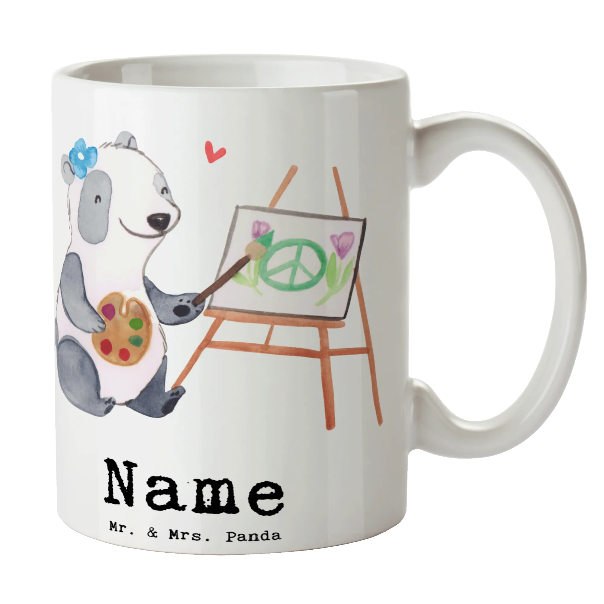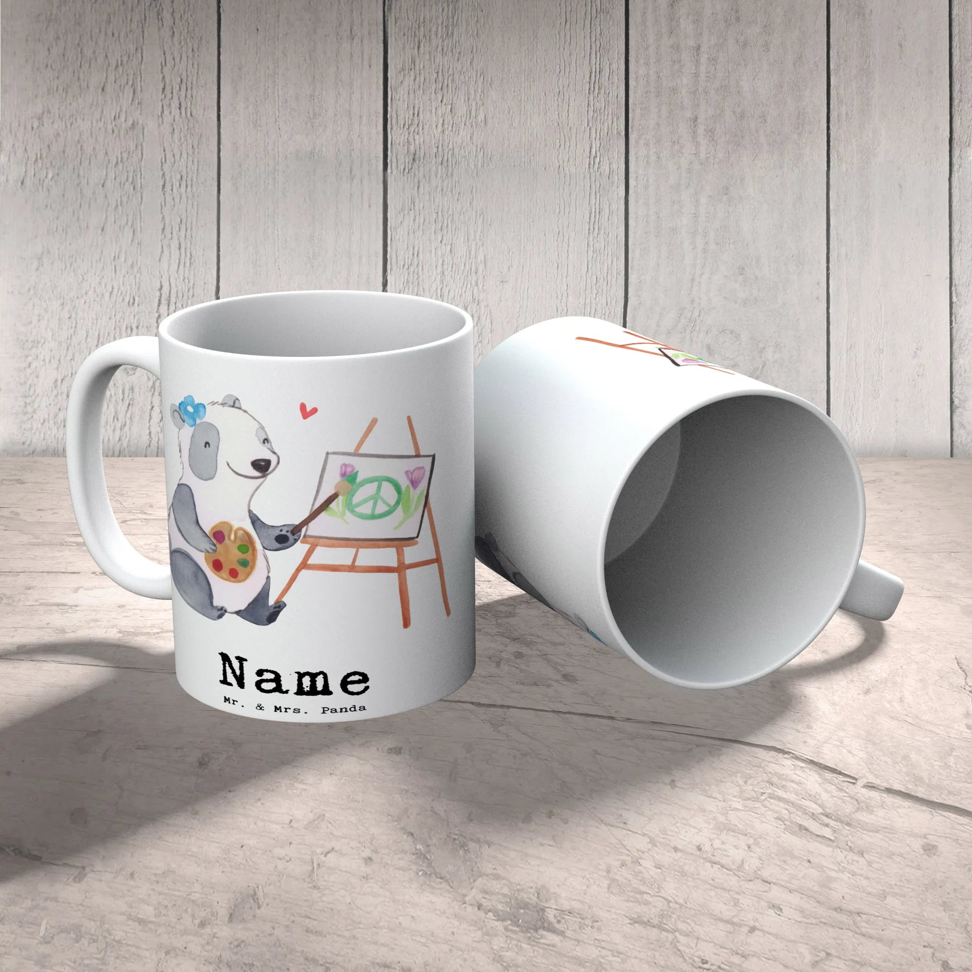 Personalisierte Tasse Kunstlehrerin mit Herz – Mr. & Mrs. Panda
