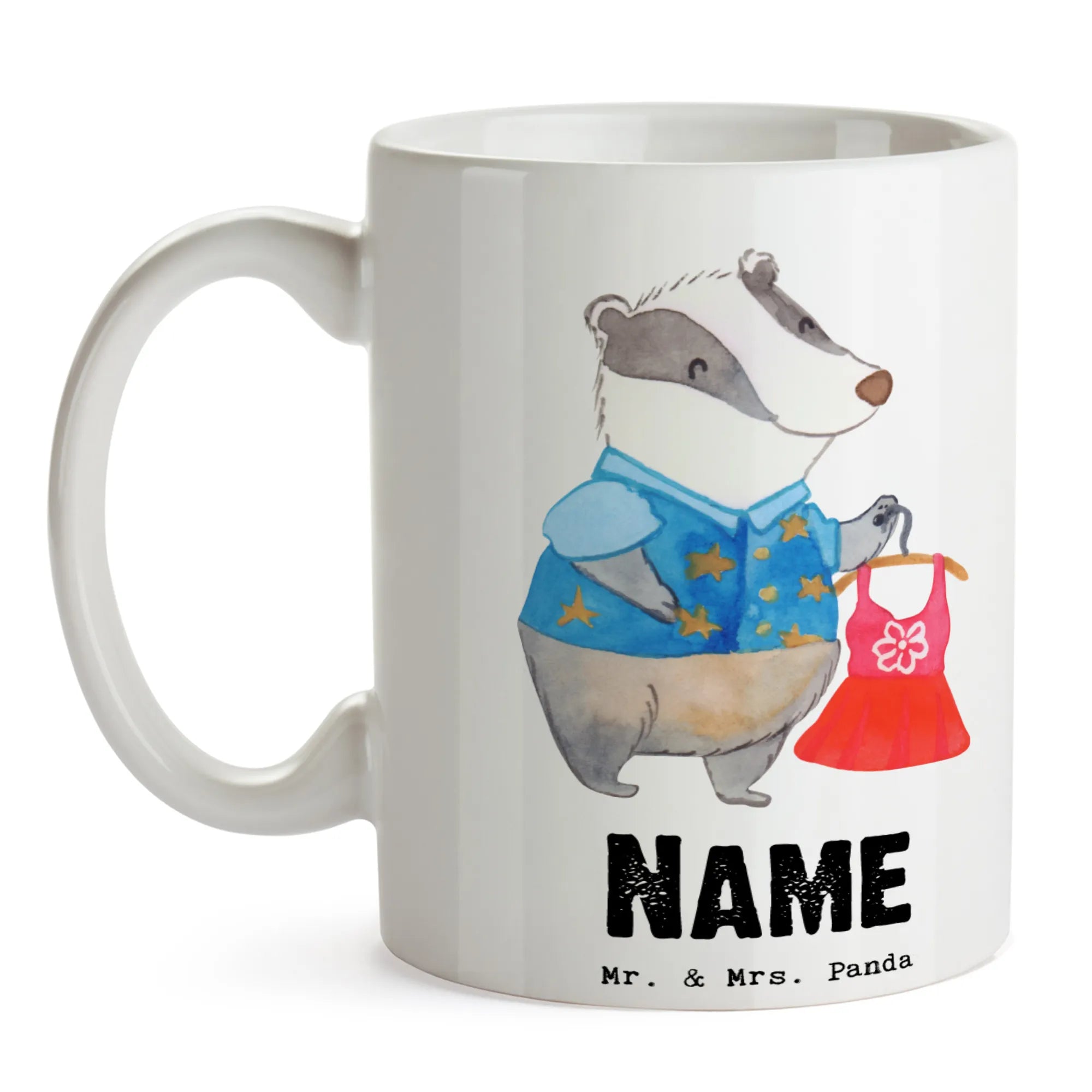 Du bist auf der Suche nach dem perfekten Geschenk für eine begeisterte Modeverkäuferin? Dann ist die personalisierte Tasse "Modeverkäuferin mit Herz" von Mr. & Mrs. Panda genau das Richtige! Diese wunderschöne, spülmaschinenfeste Keramiktasse begeistert nicht nur durch ihr süßes Design, sondern auch durch ihre persönliche Note. Du kannst die Tasse mit einem individuellen Wunschnamen oder Text gestalten – so wird sie zu einem ganz persönlichen Highlight!