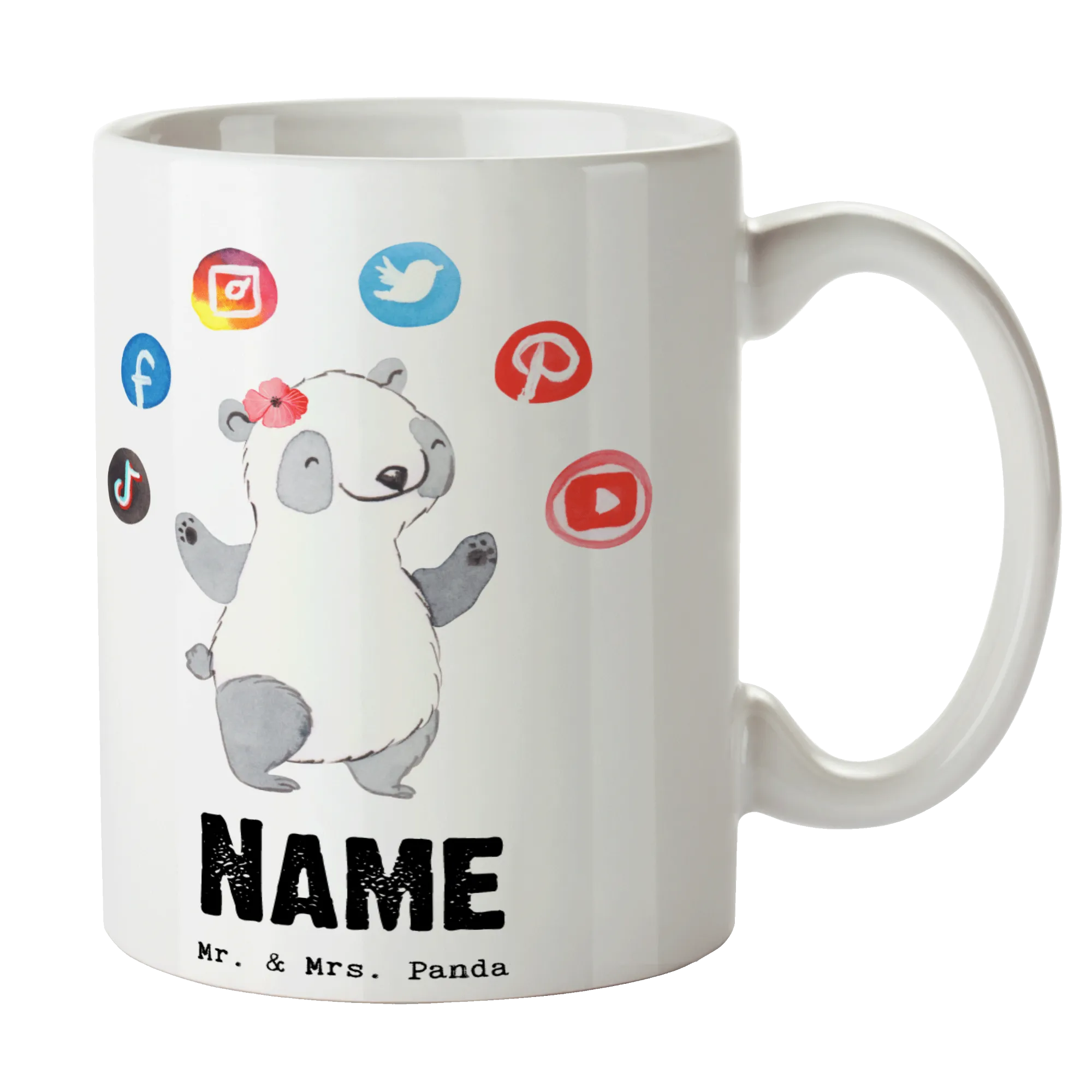 Die personalisierte Tasse "Online Marketing Manager mit Herz" von Mr. & Mrs. Panda ist das perfekte Geschenk für alle, die im digitalen Marketing tätig sind. Egal, ob zum Jobbeginn, zur Beförderung, zum Jubiläum oder sogar zum Abschied – diese Tasse bringt Freude und Dankbarkeit in jeden Büroalltag. Mit einem liebevoll handgezeichneten Motiv eines Pandas, der mit Social Media Icons jongliert, kombiniert mit dem Spruch "Du bist nur ein halber Mensch, wenn du keine Online Marketing Manager bist", ist diese Tasse sowohl eine Hommage an den Beruf als auch eine persönliche Note.