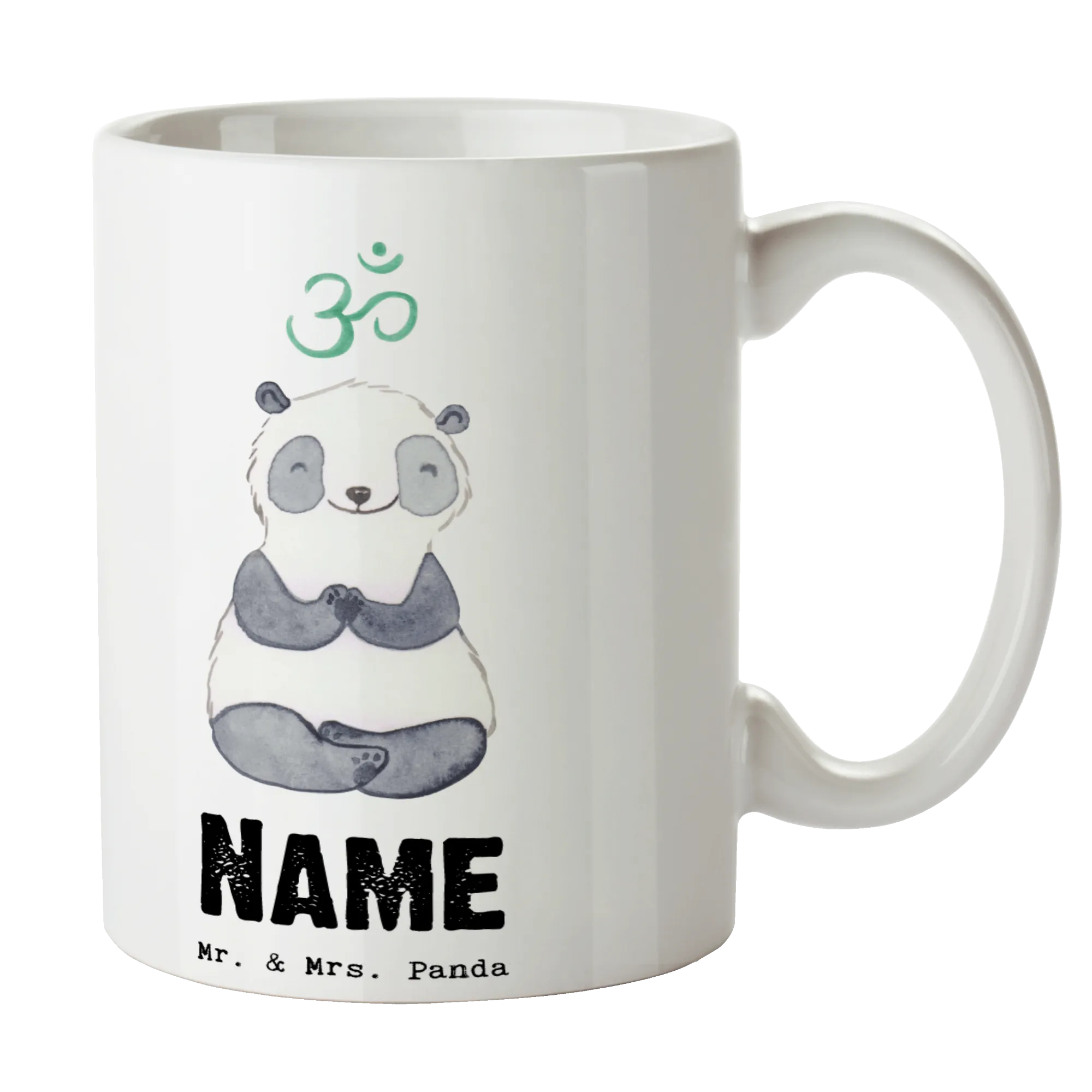 Personalisierte Tasse Panda Meditieren Tasse mit Namen, Personalisierte Tasse, Personalisiert, Namenstasse, Wunschname, Tasse, Drucken, Namen, Geschenk, Schenken, Sport, Sportart, Hobby, Danke, Dankeschön, Auszeichnung, Gewinn, Sportler, Meditieren, Meditation, Meditationskurs