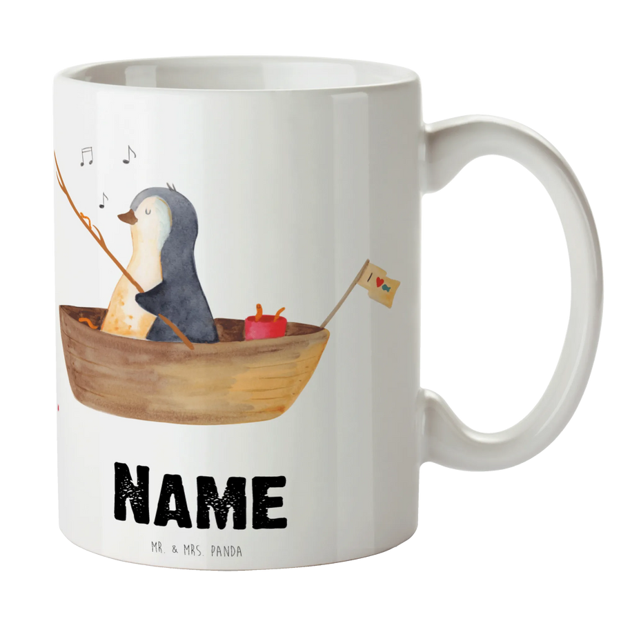 Wenn du auf der Suche nach einem ganz besonderen Geschenk für Pinguinliebhaber bist, dann ist unsere personalisierte Tasse mit dem liebevollen Motiv "Pinguin Angelboot" genau das Richtige! Diese wunderschöne Keramiktasse von Mr. & Mrs. Panda ist nicht nur ein Blickfang, sondern auch praktisch. Sie ist spülmaschinenfest und mikrowellengeeignet, sodass du sie ganz unbeschwert im Alltag nutzen kannst. Mit einer Füllmenge von 300 ml und einer besonders glänzenden Oberfläche weist sie eine hohe Qualität auf und hält bis zu 2000 Waschgängen stand, ohne dass ihr Design verblasst.